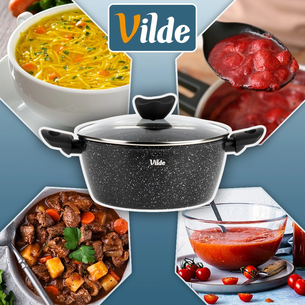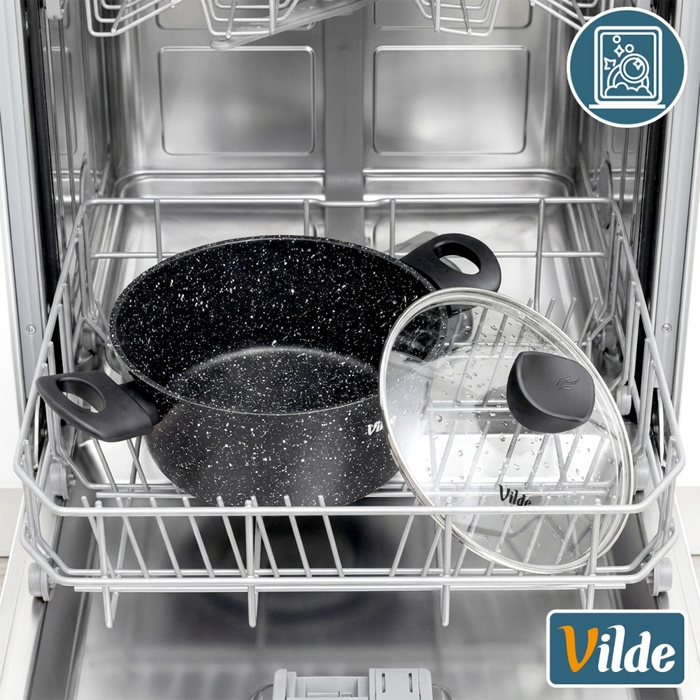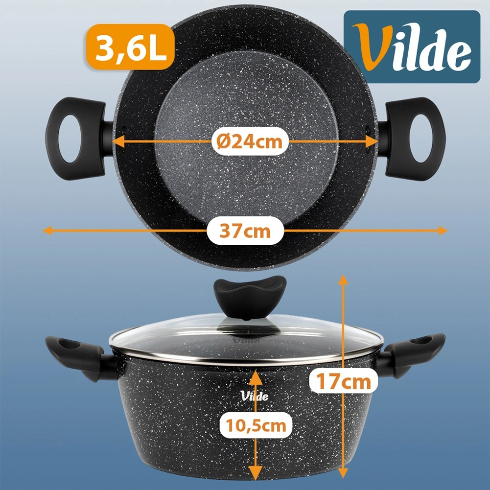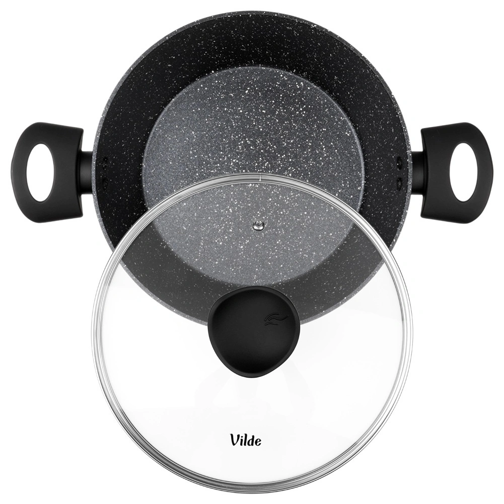 Praktische pan met een inhoud van 3,6 l uit de serie VILDE GRANITICA combineert een slijtvaste aluminium gietconstructie met een anti-aanbak granieten oppervlak voor gezond koken met minimaal vet. Inclusief glazen deksel met stoomopening en comfortabele Soft Touch handgrepen. Geschikt voor inductie, gas, elektrisch en keramisch en vaatwasmachinebestendig.