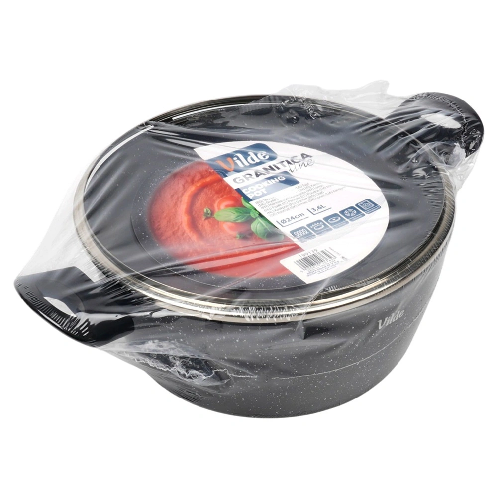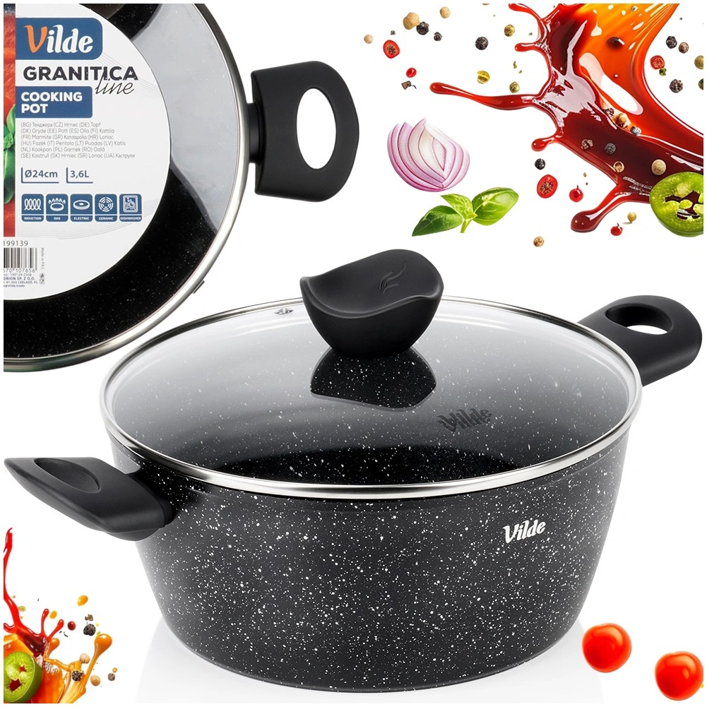Granieten pan met glazen deksel Vilde Granitica 24 cm, 3,6 l