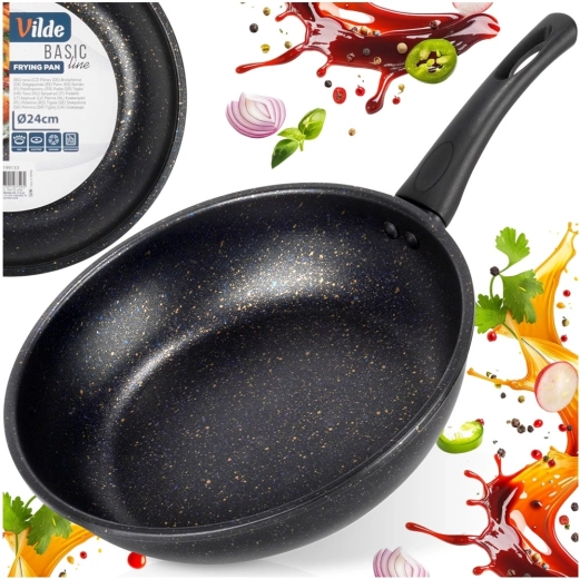 Ontdek tijdloos design en betrouwbare prestaties. De granieten koekenpan BASIC LINE 24 cm heeft een duurzame antiaanbaklaag die het bereiden van gezonde en smakelijke gerechten met een minimale hoeveelheid olie vereenvoudigt. Dankzij de gelijkmatige warmteverdeling behaalt u uitstekende resultaten bij zowel bakken als stoven.