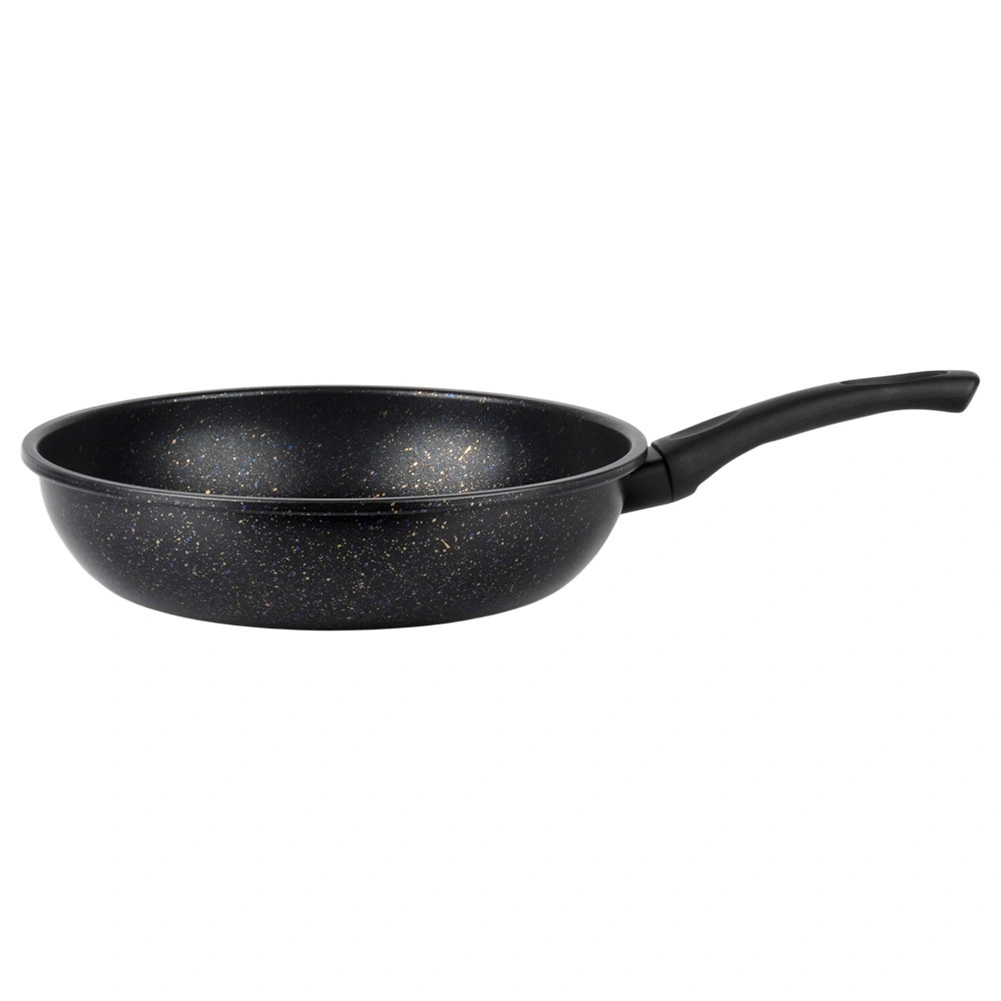 Praktische granieten koekenpan met een diameter van 24 cm uit de Basic Line met een antiaanbaklaag voor koken met minimaal vet, snelle en gelijkmatige bakresultaten en comfortabele grip dankzij de ergonomische handgreep. Geschikt voor gas-, elektrische en keramische kookplaten (niet geschikt voor inductie) en vaatwasmachinebestendig.