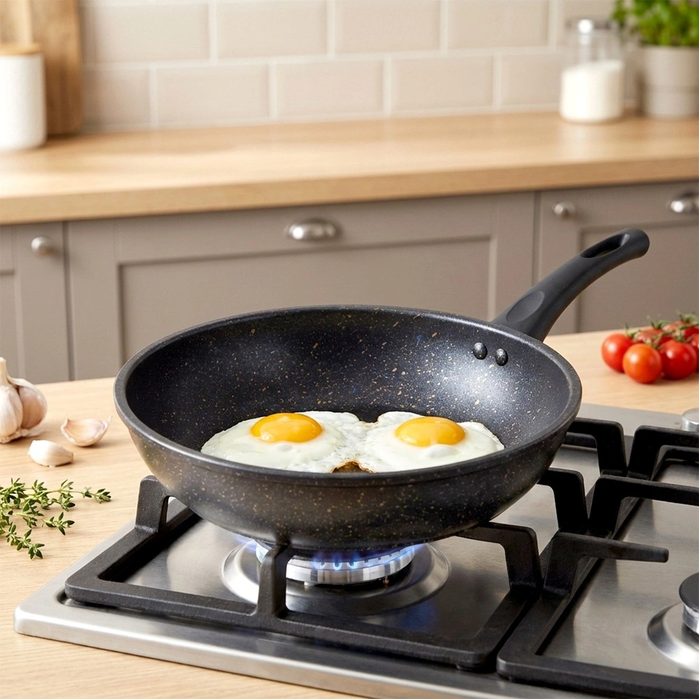 Het oppervlak met graniet-effect voorkomt aanbranden, maakt koken met weinig vet mogelijk en vergemakkelijkt het reinigen na elke kookbeurt.