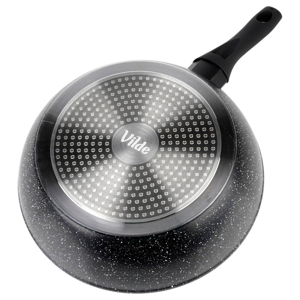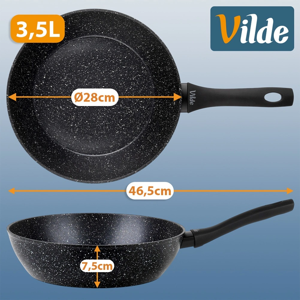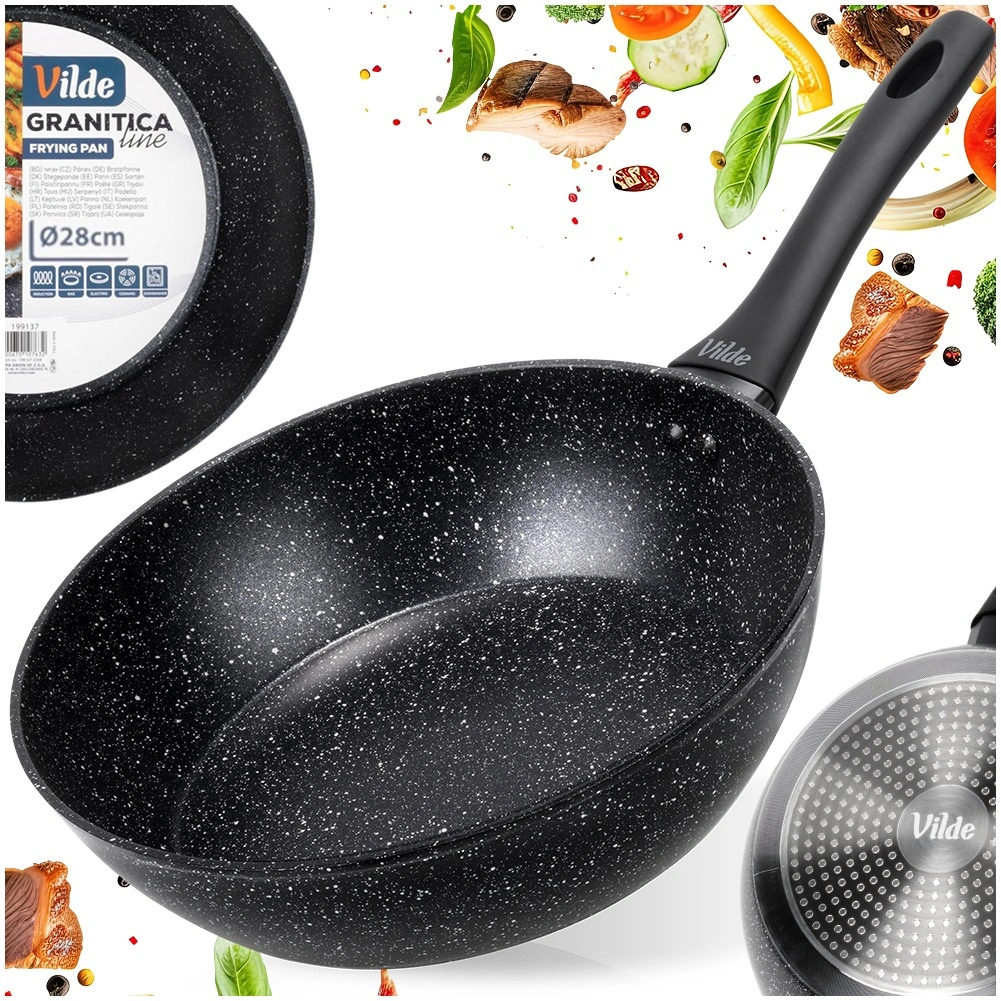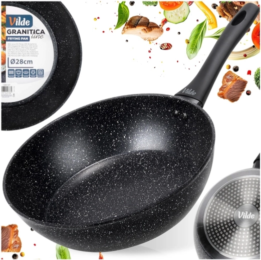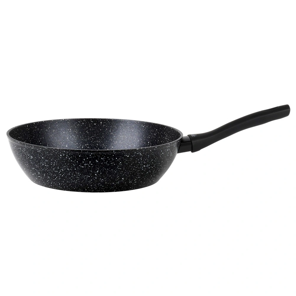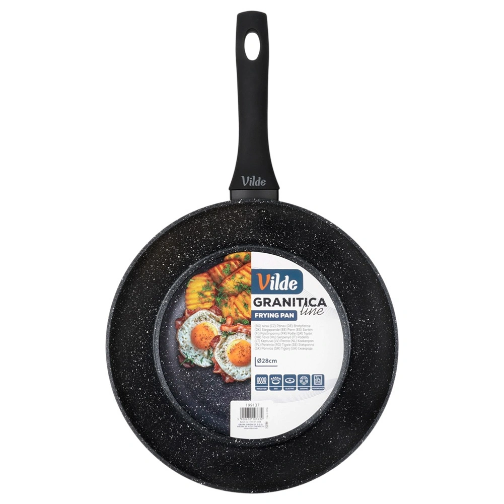 Praktische granieten pan met een diameter van 28 cm voor dagelijks koken. Dankzij het anti-aanbak granieten oppervlak bak je met een minimum aan vet, terwijl het stevige aluminium lichaam zorgt voor een snelle en gelijkmatige warmteverdeling. De ergonomische soft touch handgreep is comfortabel en veilig, de pan is geschikt voor alle soorten kookplaten inclusief inductie en is vaatwasserbestendig.