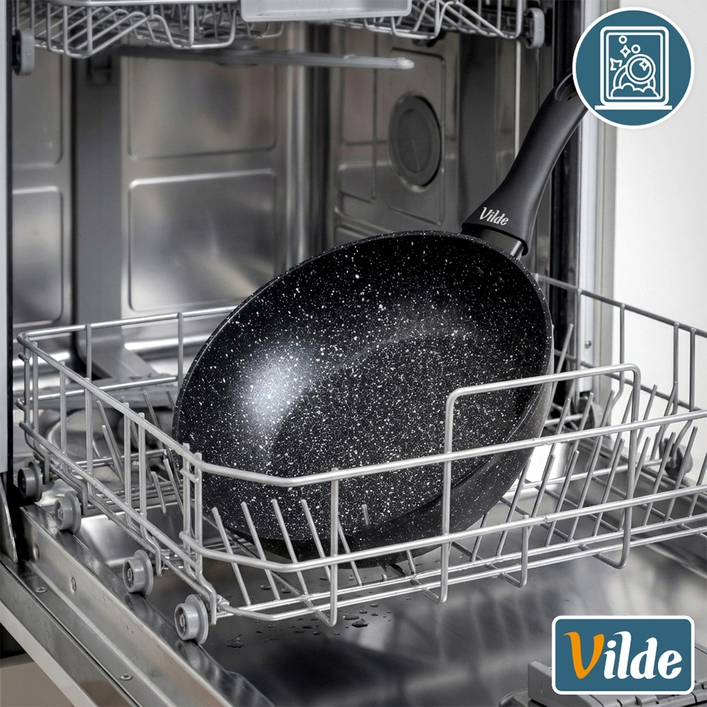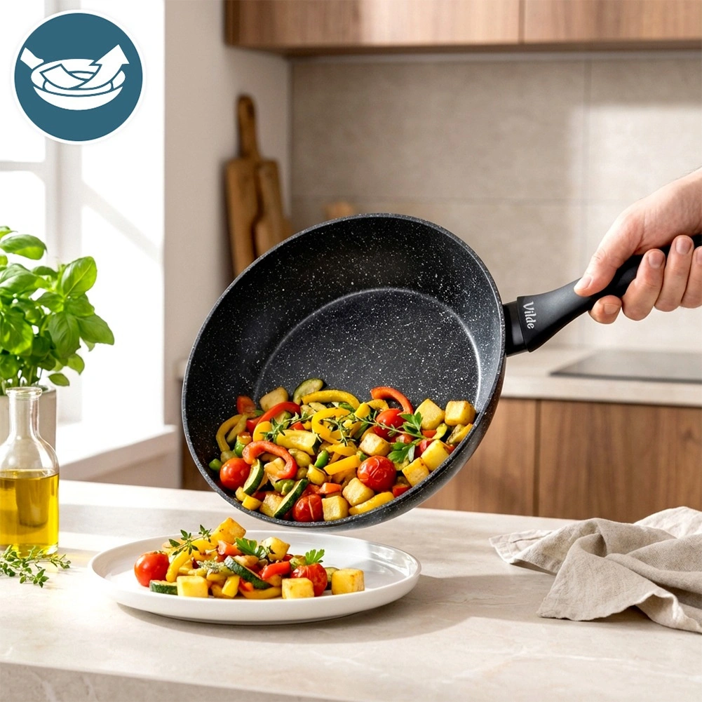 Ontdek de veelzijdige pan voor bakken en stoven met een inhoud van 3,5 l, die dankzij de meerlaagse constructie en de anti-aanbak granieten laag zorgt voor gemakkelijk loslaten van gerechten en eenvoudige reiniging. Ideaal voor vlees, groenten en het snel opwarmen van maaltijden.