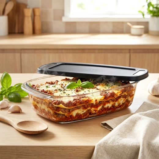 Geschikt voor lasagne, ovengerechten met aardappelen, vlees, groenten, maar ook voor het bakken van brood, cake of paté. Het deksel beschermt het eten tegen uitdrogen en maakt veilig meenemen en bewaren zonder morsen mogelijk.