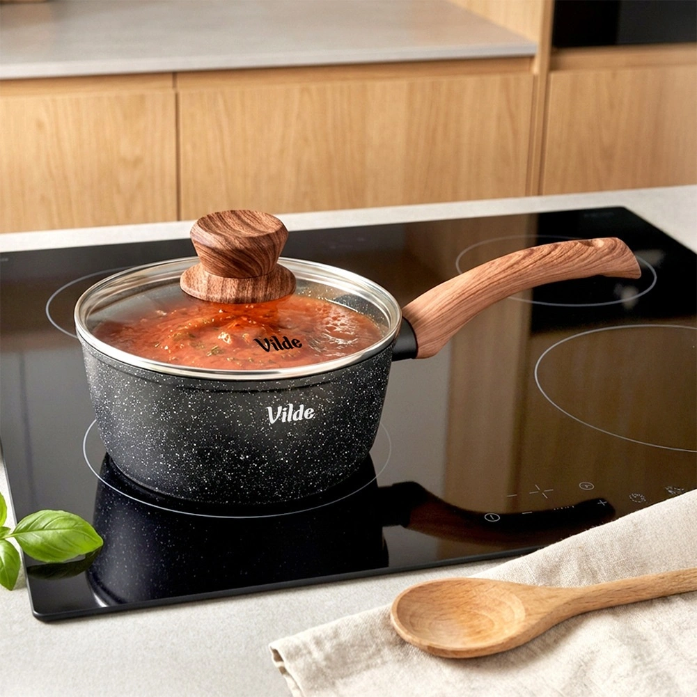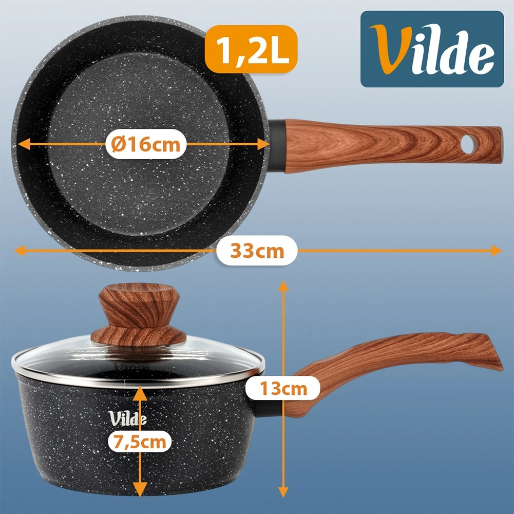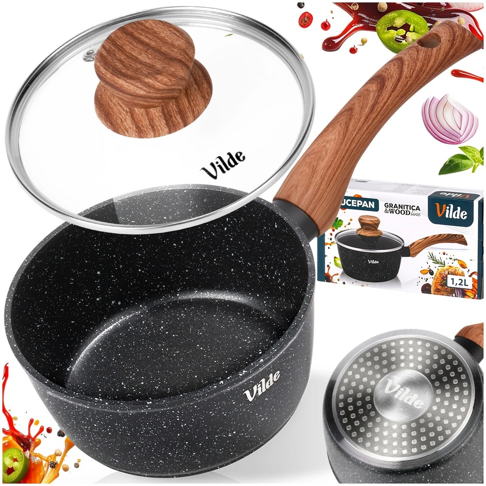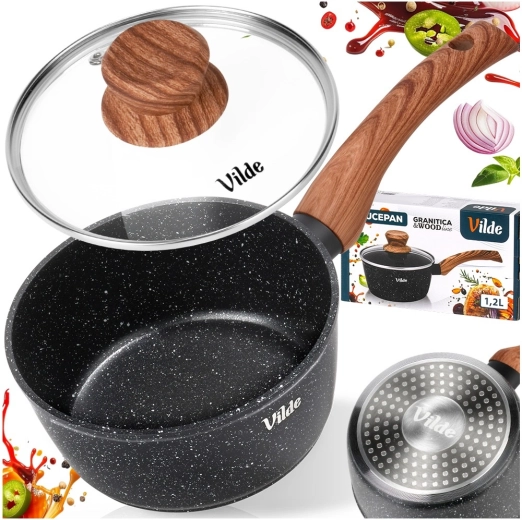 De elegante steelpan uit de Granitica Wood-collectie is ideaal voor dagelijks koken van kleinere porties – van sauzen en pap tot het verwarmen van melk of het smelten van boter. De granieten antiaanbaklaag zorgt voor koken met een minimum aan olie en een gemakkelijke lossing van gerechten.