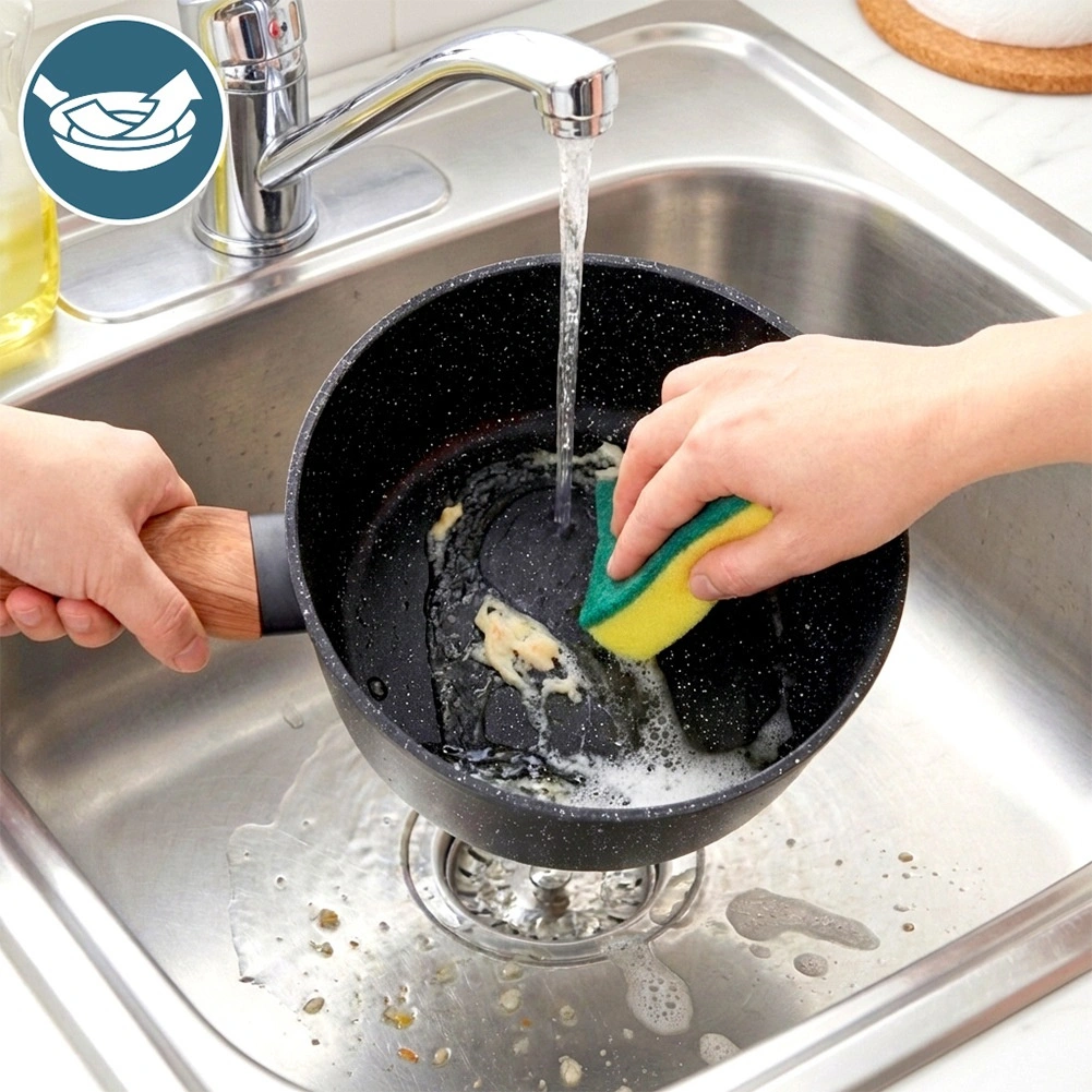De speciale granietlaag minimaliseert aanbakken, maakt koken met minder vet mogelijk en vereenvoudigt het reinigen.