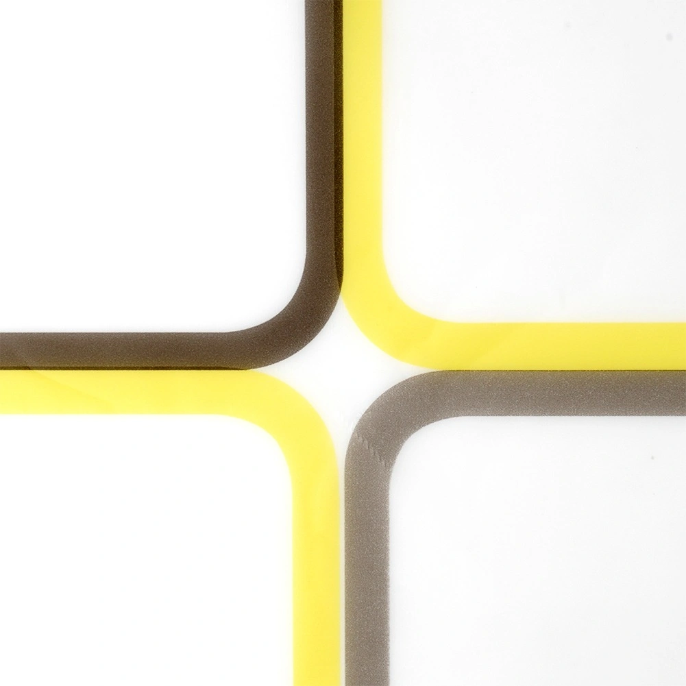 Halftransparante witte basis, geometrische vierkanten in geel, bruin en grijs