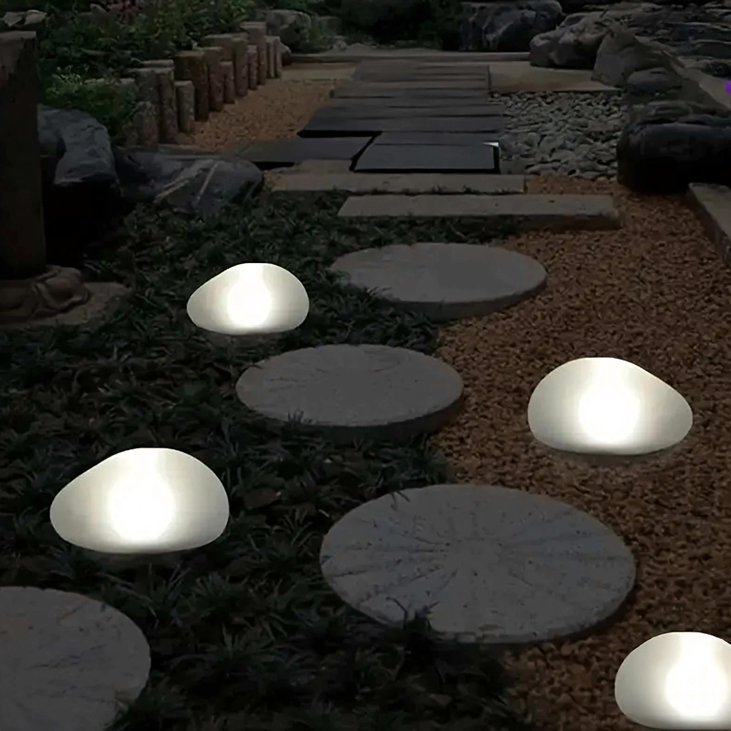 Creëer een betoverende sfeer in de tuin, op het terras of bij het pad naar de ingang. De zonne-LED “steen” laadt overdag op via de zon en gaat bij schemering automatisch aan. De minimalistische, afgeronde vorm en matte diffuser zorgen voor gelijkmatig, niet-verblindend licht dat natuurlijk opgaat in omliggende stenen en groen.