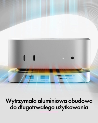 De dockingstation sluit naadloos aan bij de stijl, afmetingen en kleurstelling van de Mac mini M4, waardoor het aanvoelt als een integraal onderdeel. Het ordent je werkplek, verbetert de ergonomie en brengt veelgebruikte poorten direct naar de voorkant – snel, overzichtelijk en zonder adapters.