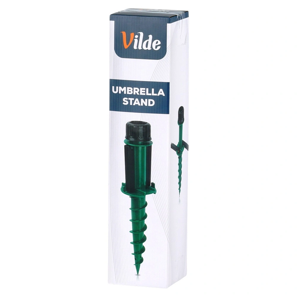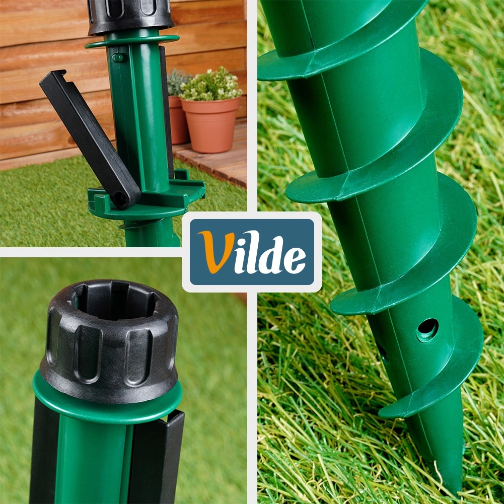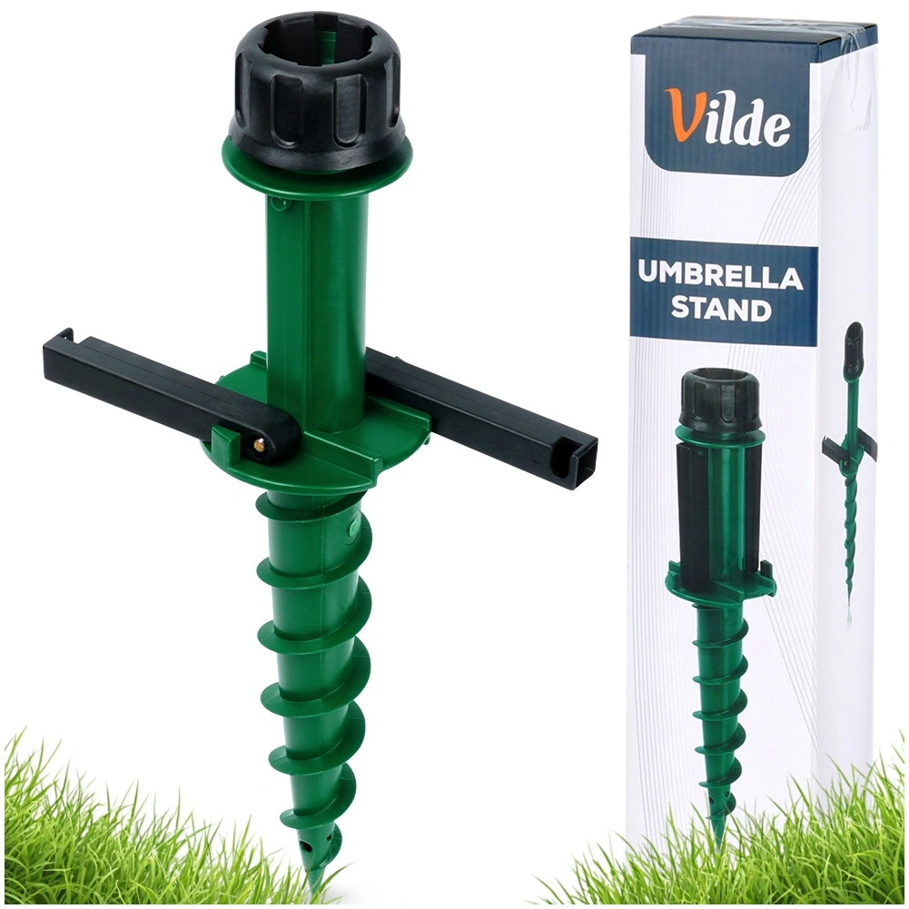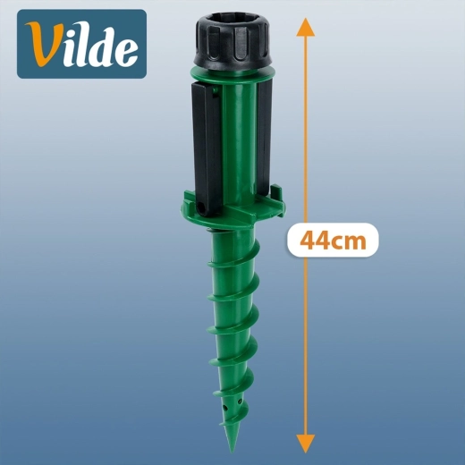 Zoek je een betrouwbare manier om een parasol veilig te verankeren in het gras, op het strand of bij het kamperen? Deze Vilde schroefstandaard van 44 cm draait zich eenvoudig in de grond en blijft dankzij de spiraalconstructie stevig zitten. Licht maar robuust ontwerp van duurzaam kunststof voor gemakkelijk meenemen en snelle installatie.