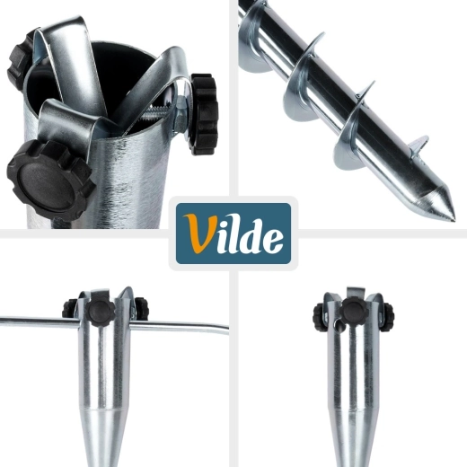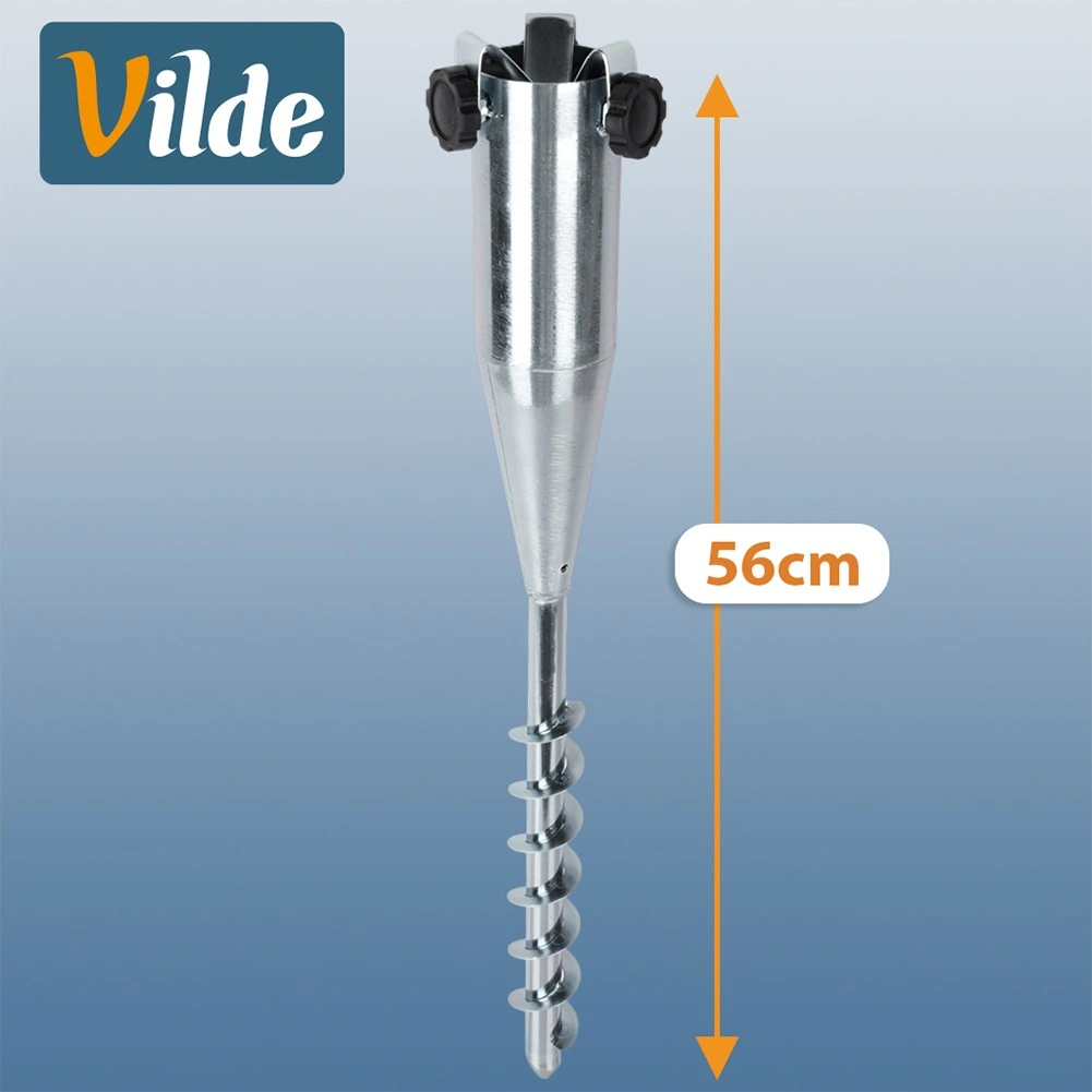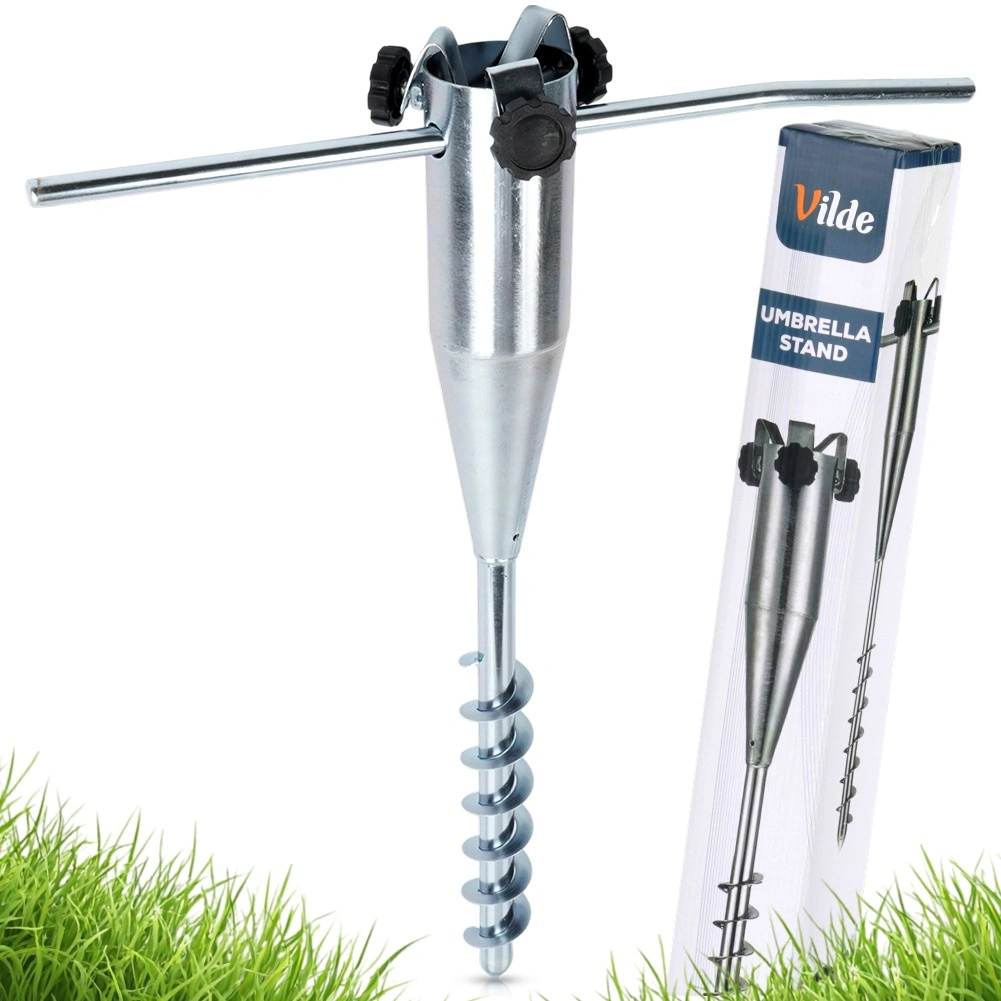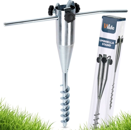 Praktische grondschroef voor een parasol voor snel en veilig verankeren zonder zware voet. Dankzij de robuuste metalen constructie, de inschroefpunt en de zijhandgrepen zorgt u eenvoudig voor stabiliteit, ook bij wind. Geschikt voor buizen met een diameter van 2–6 cm, ideaal voor strand, tuin en kamperen. Bewezen kwaliteit van VILDE.