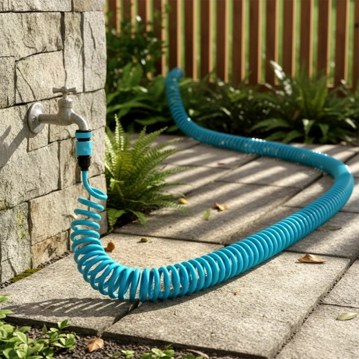 De spiraalslang is ideaal voor het dagelijks besproeien van bloemen, gazon of groenten in de kas, en voor het schoonmaken van het terras. Dankzij de compacte spiraal neemt hij minimaal ruimte in, is hij licht, makkelijk hanteerbaar en veert hij na gebruik vanzelf terug in de oorspronkelijke vorm.