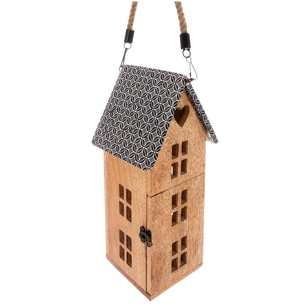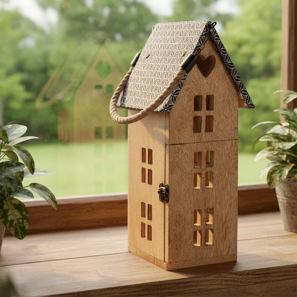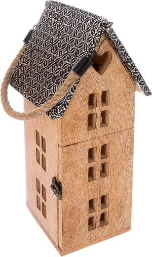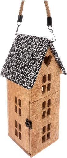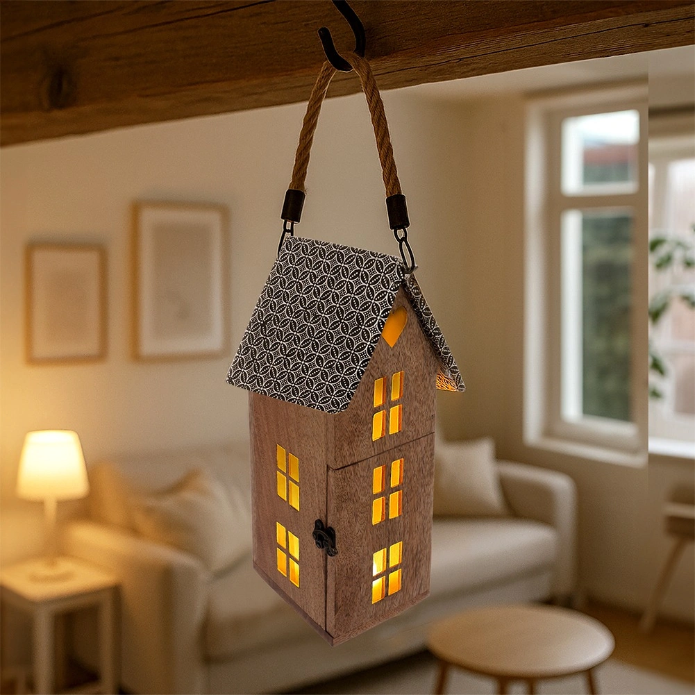 De praktische, afneembare touwgreep maakt eenvoudig dragen en ophangen mogelijk. Zet de lantaarn op een dressoir, plank of vensterbank, of hang hem op voor nog indrukwekkendere lichteffecten door de raampjes van het huisje. Ideaal als jaarronde decoratie en als seizoensaccent voor feestdagen en gezellige avonden.