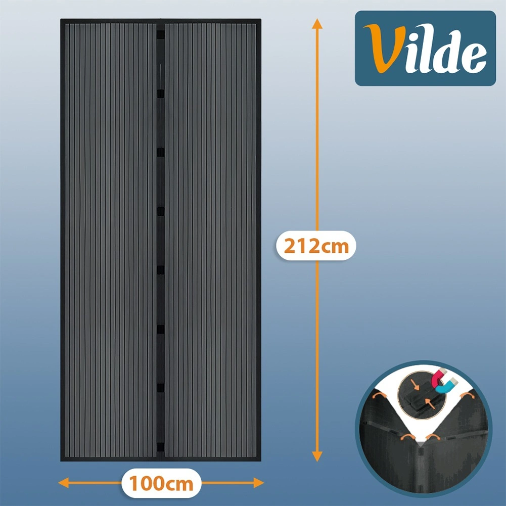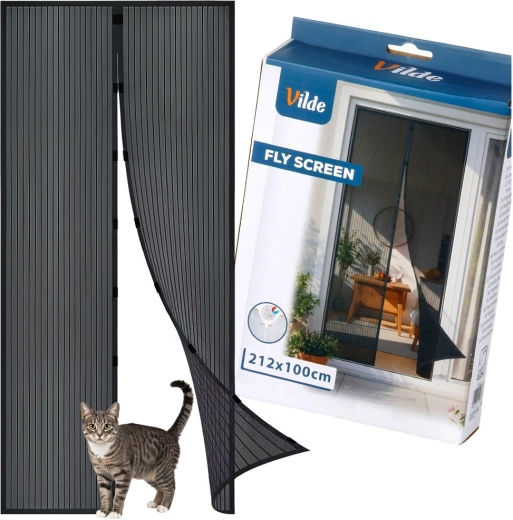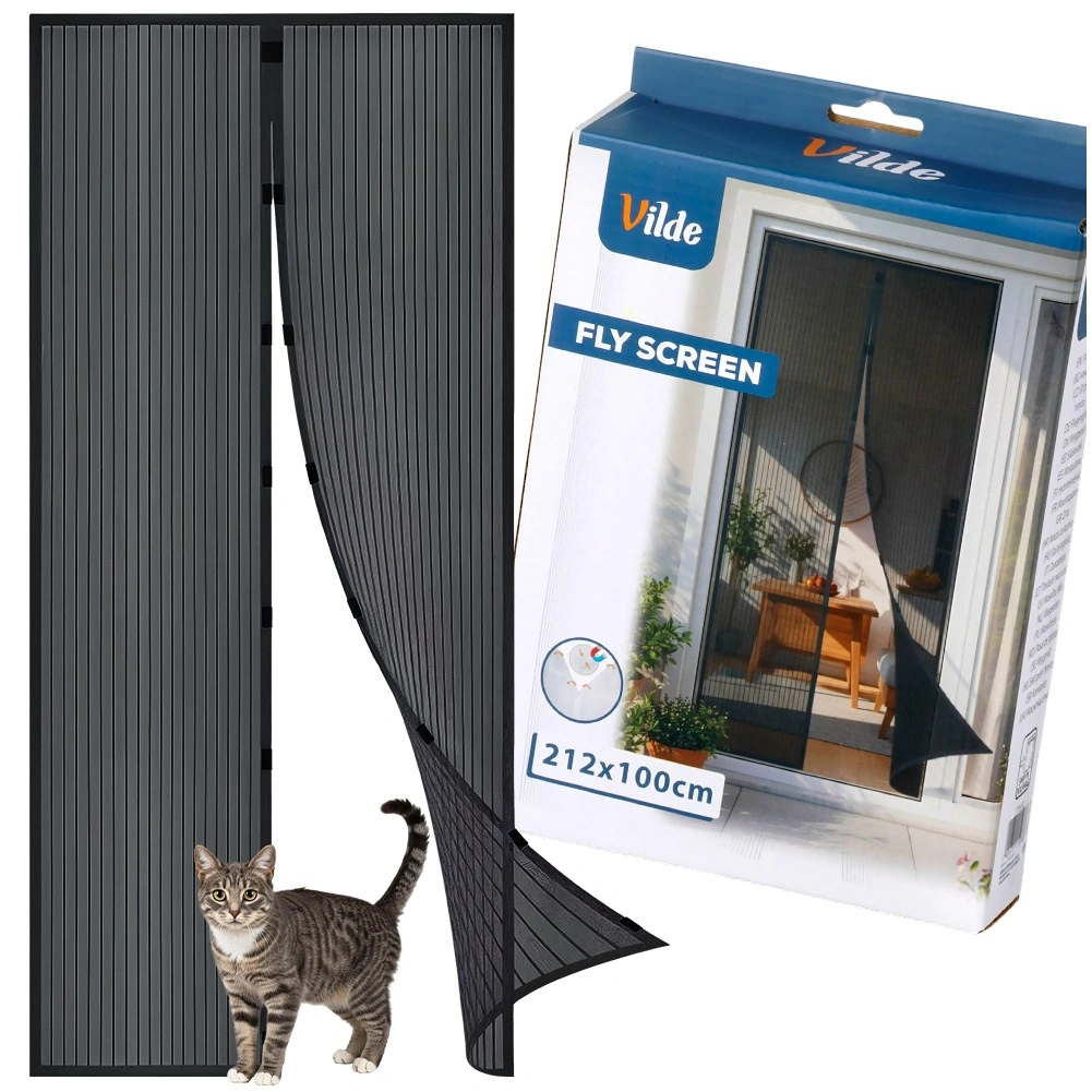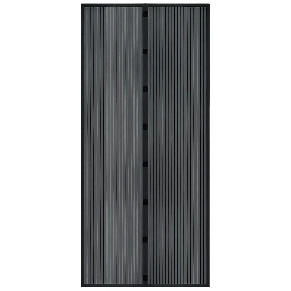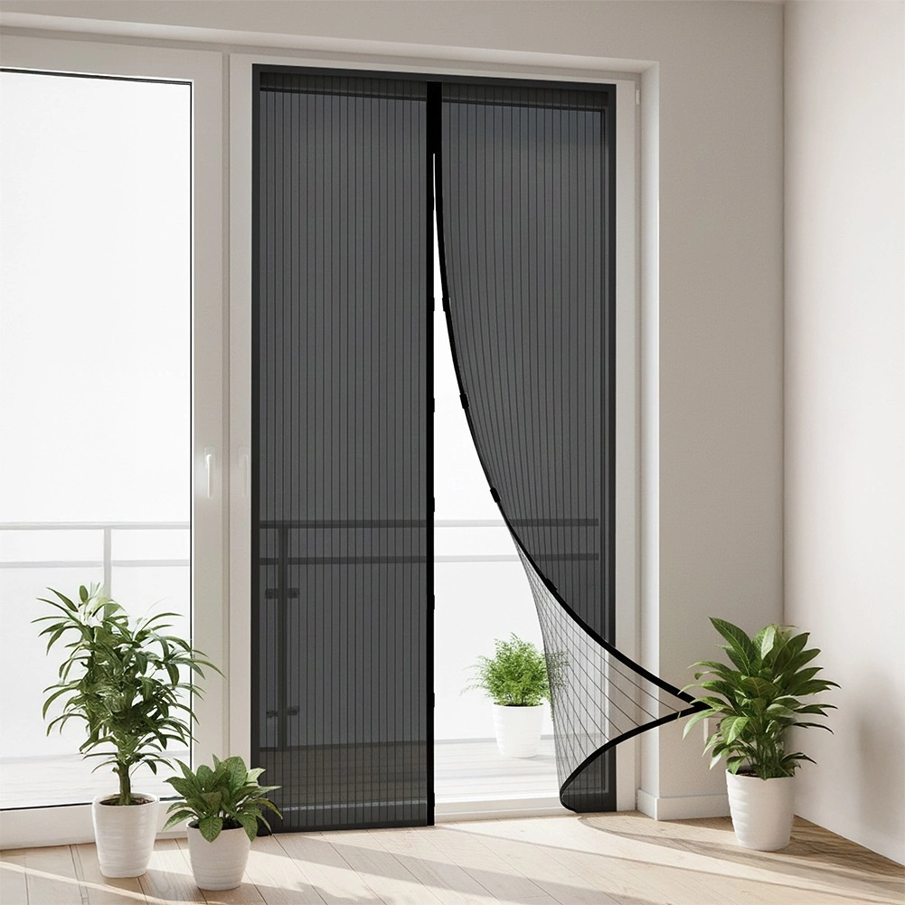 Praktisch magnetisch hordeur van 212 × 100 cm in elegant zwart. Twee stevige gaaspanelen sluiten in het midden automatisch dankzij magneten voor handsfree doorgang. Het fijne, duurzame polyestergaas biedt effectieve bescherming tegen insecten en laat licht en frisse lucht door. Eenvoudige montage met zelfklevend klittenband of meegeleverde punaises, met de mogelijkheid tot inkorten op maat.
