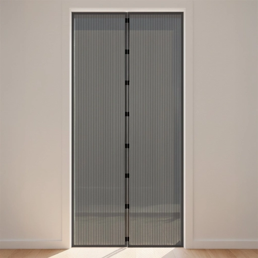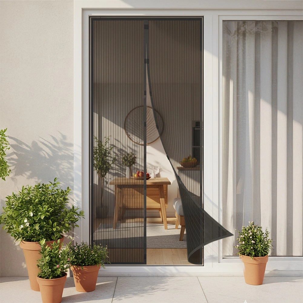 Geniet van ventilatie zonder concessies. Het hordeur bestaat uit twee panelen (elk ca. 50 cm) die in het midden soepel en betrouwbaar sluiten met sterke magneten. Het beschermt je huis tegen muggen en vliegen zonder zicht of lichtinval te belemmeren.