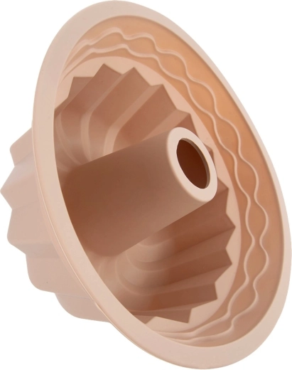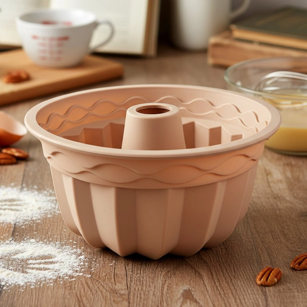 Met deze beige siliconen tulbandvorm bak je perfect gegaarde desserts met elegante reliëfgroeven. Flexibel siliconen maakt eenvoudig lossen mogelijk zonder in te vetten of te bebloemen en zorgt voor strakke vormen zonder scheuren.