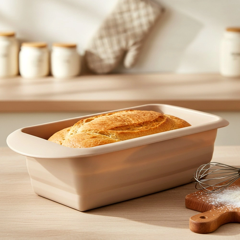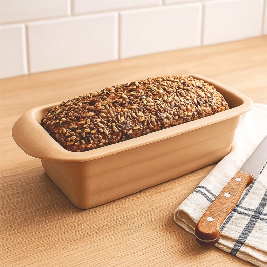 Deze beige siliconen vorm is ideaal voor het bakken van huisgemaakt brood, cake- en gistdeeg, biscuits en patés. Dankzij het flexibele, antiaanbakmateriaal bakt het deeg niet aan, los je het brood moeiteloos en is de vorm eenvoudig te reinigen. Bewezen kwaliteit levert betrouwbare resultaten bij elke baksessie.