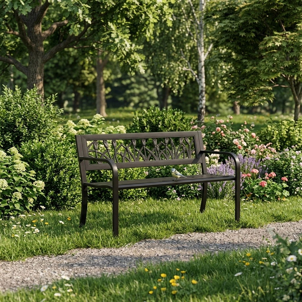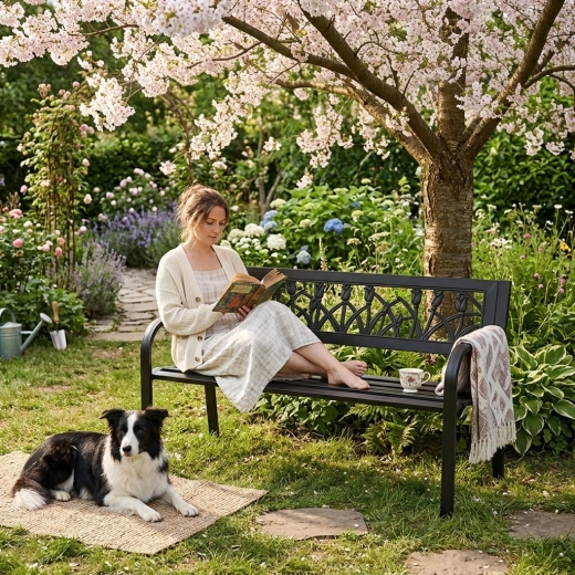 De elegante tuinbank MultiGarden in parkstijl brengt comfort en stijl naar je tuin, terras of balkon. Dankzij de stevige stalen constructie met poedercoating, weerbestendigheid en de ergonomische rugleuning met bloemmotief van PVC biedt hij een lange levensduur en prettig zitcomfort. Antislip doppen op de poten beschermen de vloer en zorgen voor stabiliteit. Maximale draagkracht 260 kg.