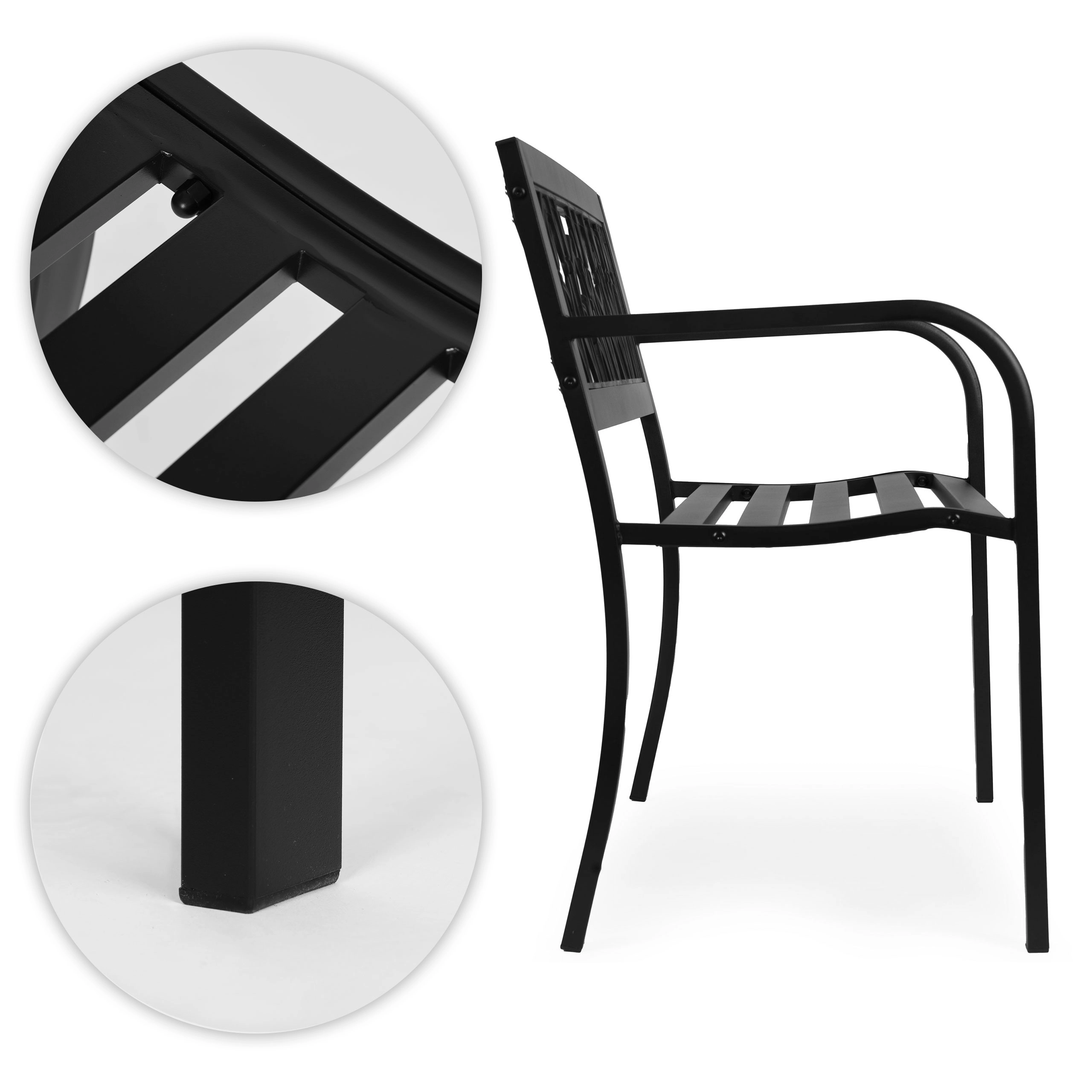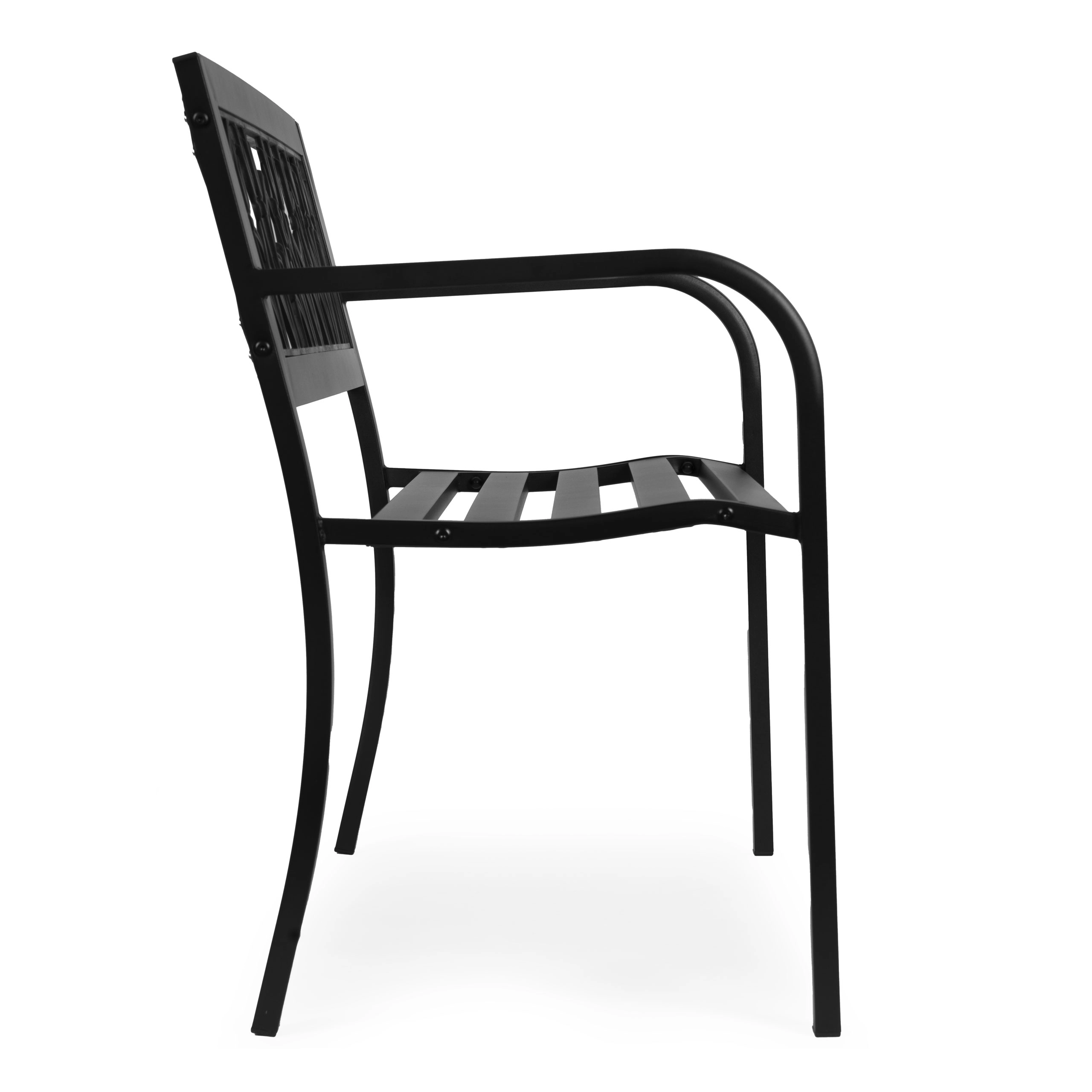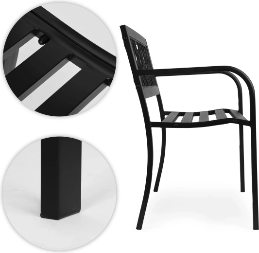 Geniet van ontspannende momenten op de duurzame en comfortabele MultiGarden-bank. De zwarte metalen afwerking met een open bloemmotief in de rugleuning past moeiteloos bij zowel klassieke als moderne buitenruimtes. Poedergecoat staal is beter bestand tegen corrosie en kleine krassen, terwijl de PVC-vulling van de rugleuning onderhoudsarm en vochtbestendig is.