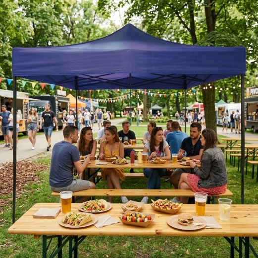Dankzij de doordachte afmetingen past hij precies op de meeste tuintentjes van 3 × 3 m. Hoge vochtbestendigheid en eenvoudig onderhoud garanderen een lange levensduur, zelfs bij frequent gebruik in het seizoen. De blauwe uitvoering past perfect in de tuin, op het terras en bij outdoor-evenementen.