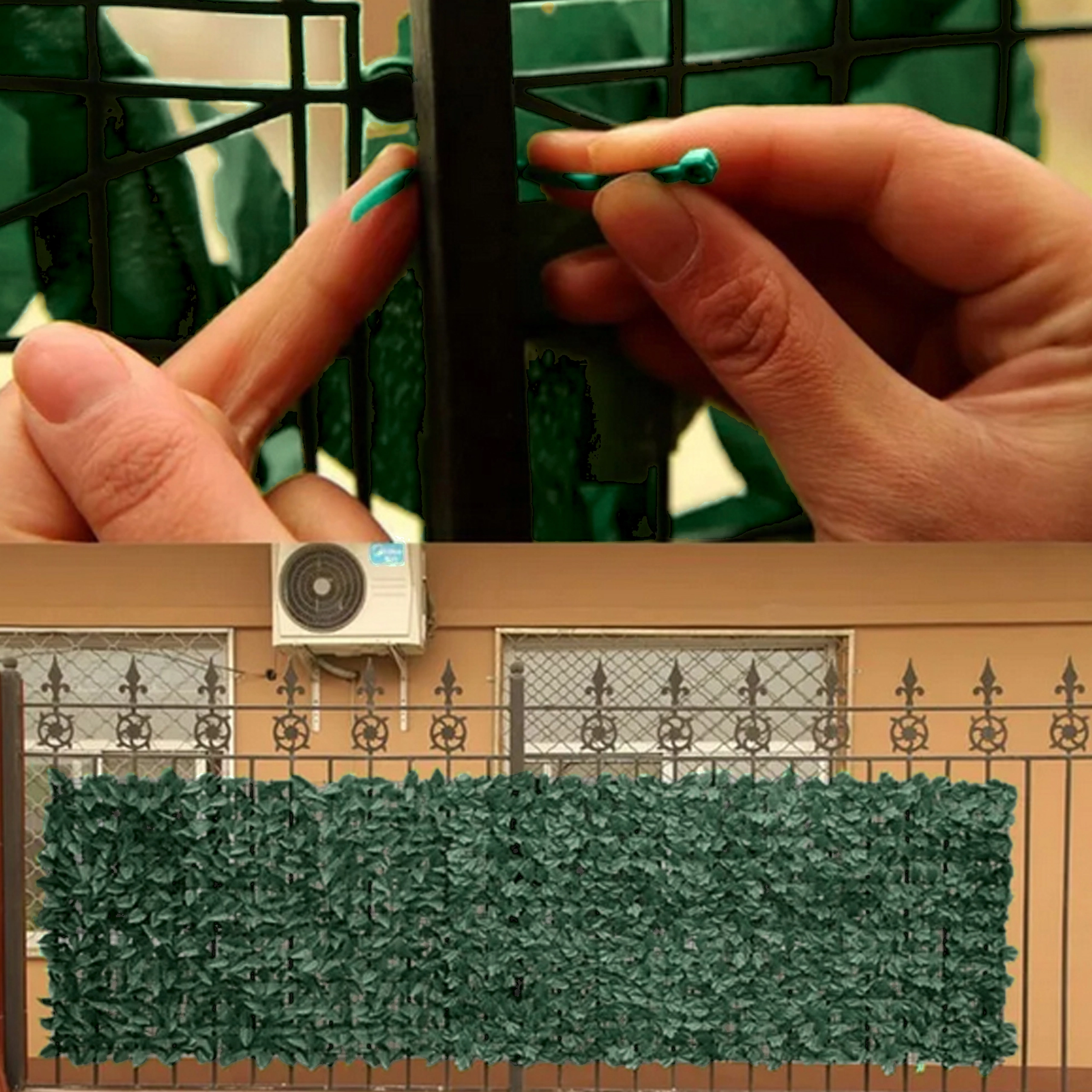 Bevestig de schutting eenvoudig aan een bestaand hekwerk of balkonreling met kabelbinders. Hij is makkelijk te knippen en aan te passen aan de ruimte.