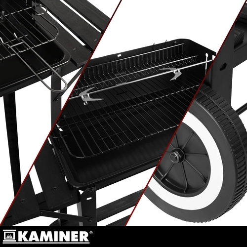 Zoek je een duurzame tuinbarbecue die niet gaat wiebelen na het eerste seizoen en bovendien makkelijk te reinigen is? De KAMINER-barbecue met een robuuste constructie van 0,9 mm plaatstaal biedt sterkte, stabiliteit en comfort bij elke BBQ. De verchroomde oppervlakken van de roosters en het spit vereenvoudigen het onderhoud en zorgen voor veilig contact met voedsel.
