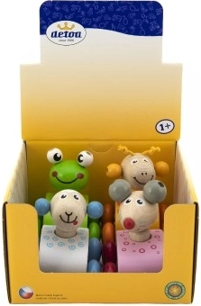 Er zijn 4 populaire motieven om uit te kiezen – muisje, schaapje, giraf en kikker. Elk diertje heeft opvallende kleuren en een lieve uitstraling die fantasie en zintuiglijke waarneming stimuleert. Het speeltje helpt bij het ontwikkelen van motorische vaardigheden, greep en coördinatie.