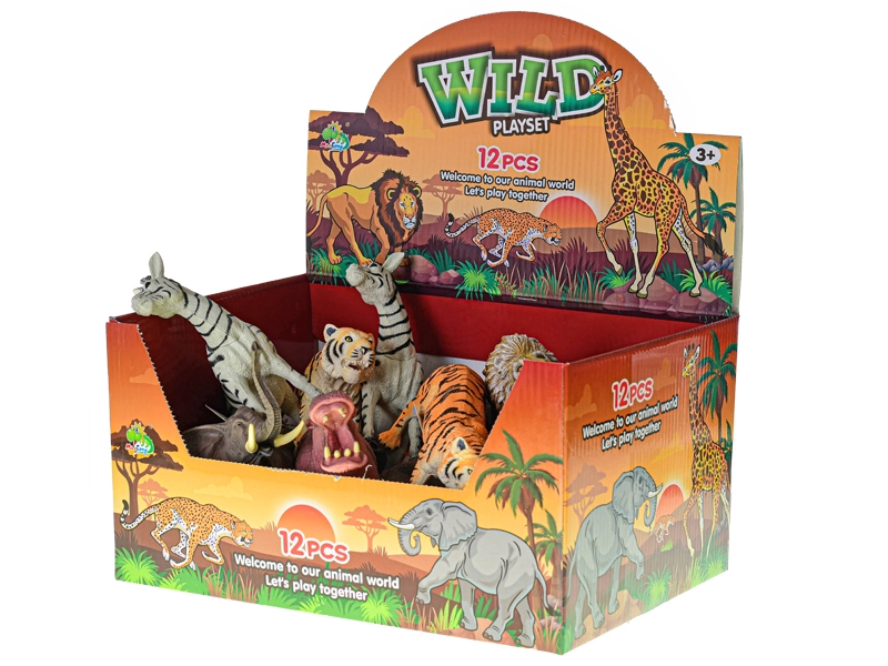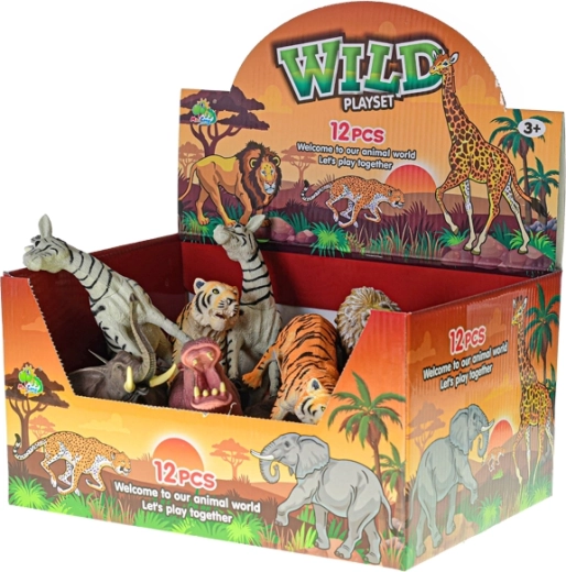 Maak thuis je eigen dierentuin met een set realistische safaridieren! De verpakking bevat 12 stuks van 15–20 cm en 6 verschillende soorten – nijlpaard, olifant, giraffe, leeuw, tijger en zebra. Ideaal om mee te spelen en te leren; stimuleert de fantasie, fijne motoriek en kennis over de natuur. Grote figuren, 6 diersoorten, 12 stuks per set, vanaf 3 jaar.