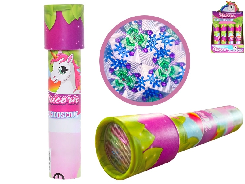 Ontdek de magie van de verbeelding met deze schattige kaleidoscoop met eenhoornthema. Kijk door de lens en draai aan de buis – voor je ogen verschijnen voortdurend veranderende kleurrijke patronen. Dankzij de compacte afmetingen en het duurzame kunststof ontwerp ligt hij perfect in kleine kinderhanden. Geschikt voor kinderen vanaf 3 jaar, verkrijgbaar in vier kleurvarianten.
