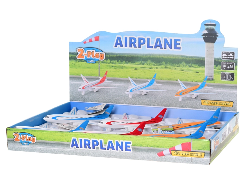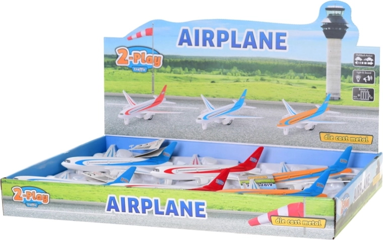 Beleef volop actie met het robuuste metalen 2-Play vliegtuig, dat dankzij de pull-back na het terugtrekken soepel vooruit rijdt. Realistische licht- en geluidseffecten prikkelen de verbeelding en maken van elke start en landing een spannend avontuur.