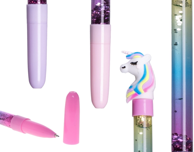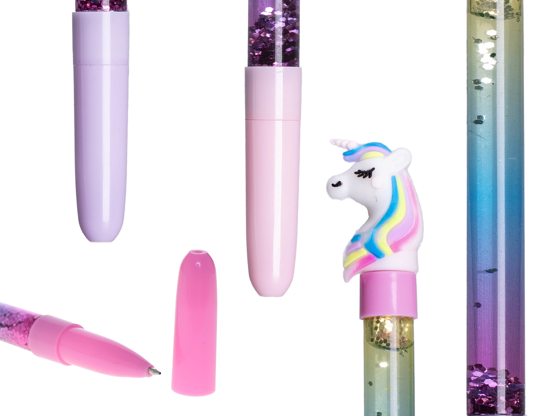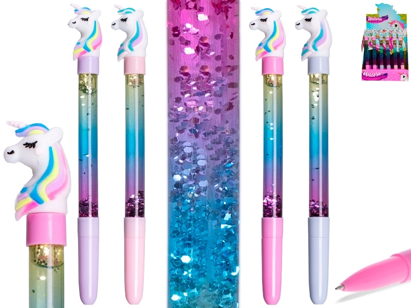 Deze stijlvolle pen met een schattige eenhoorn verandert elke schrijftaak in plezier. Dankzij de transparante behuizing gevuld met vloeistof met glitters ontstaat bij elke beweging van de pen een betoverend sprankelend effect. De pen ligt comfortabel in de hand en is ideaal voor op school, voor aantekeningen of als klein cadeautje.