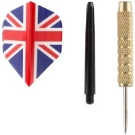 De set werpdarts bevat drie darts met robuuste metalen punten en opvallende Union Jack flights die stijl toevoegen aan je spel. De darts zijn ontworpen voor zowel beginnende als gevorderde spelers. Verwisselbare shafts en flights maken eenvoudige personalisatie mogelijk.