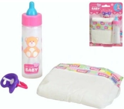 Deze set is een geweldige aanvulling voor kleine poppenverzorgers. Het flesje met verdwijnende melk bootst het voeden realistisch na, de speen stelt elk “baby’tje” gerust en de luier zorgt voor netheid tijdens het spel. Compatibel met de meeste poppen van 38–43 cm.