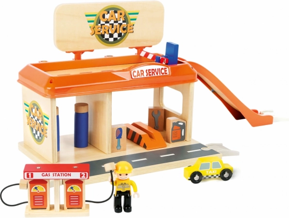 Dit houten speelgoed is ideaal voor kleine autoliefhebbers. De autoservice en het tankstation bieden speelplezier op twee verdiepingen en dus nog meer ruimte om te ontdekken. Kinderen zullen dol zijn op de realistische designelementen, waaronder de helling en de parkeerplaats met slagboom.