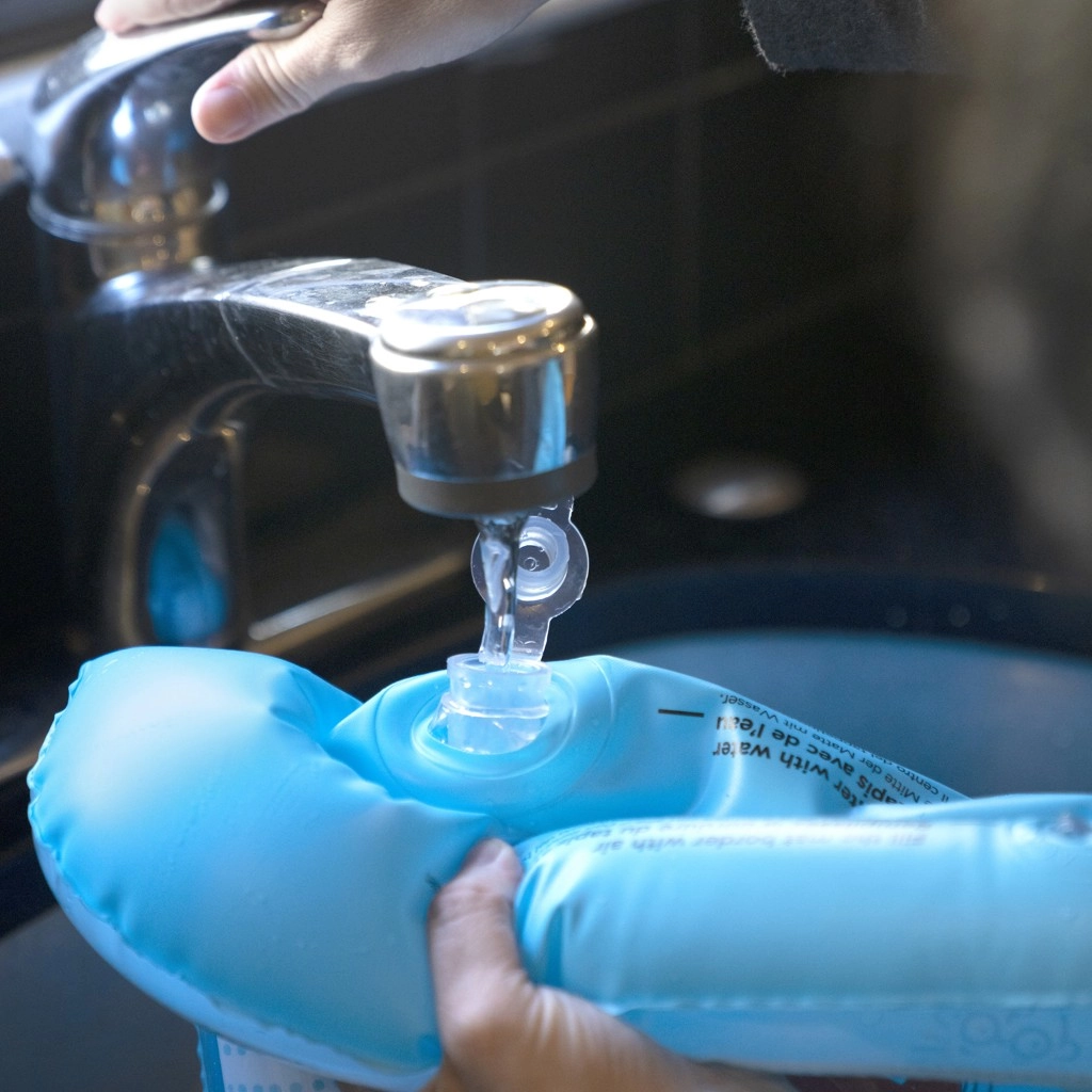 Na het legen en laten leeglopen vouw je de mat eenvoudig op en stop je hem in de tas. Ideaal voor thuis en op reis.