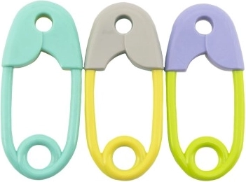 Een leuk en veilig rammelaartje in de vorm van een veiligheidsspeld waar elke baby blij van wordt. Het is zeer licht, makkelijk vast te houden en stimuleert met zijn levendige kleuren zowel de zintuiglijke waarneming als de fijne motoriek. Ideaal voor de eerste ontdekkingen.