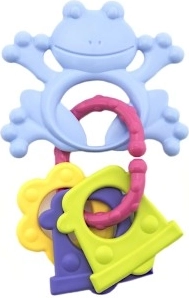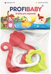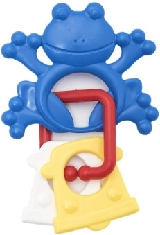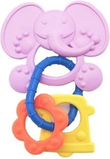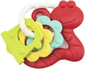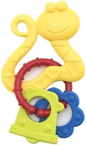 Verschillende oppervlakken en ringen masseren het tandvlees zachtjes en zorgen tegelijk voor vermaak met het rammelgeluid.