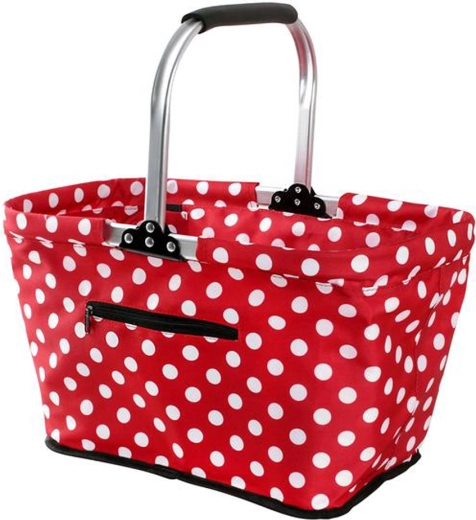 De praktische opvouwbare boodschappenmand TORO is de ideale partner voor dagelijkse boodschappen, markten en reizen. Dankzij de lichte constructie en het eenvoudig opvouwen bespaart hij ruimte, terwijl het slijtvaste materiaal voor een lange levensduur zorgt. De royale afmetingen van 48 × 28 × 28 cm en een draagvermogen van 10 kg bieden voldoende ruimte voor alles wat je nodig hebt. De stijlvolle uitvoering in zwart met witte stippen valt meteen op.