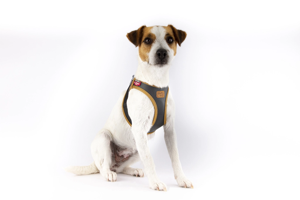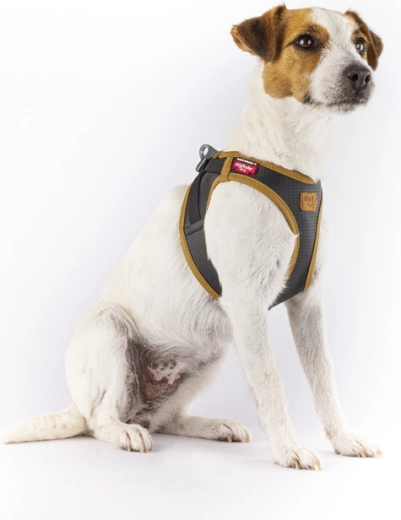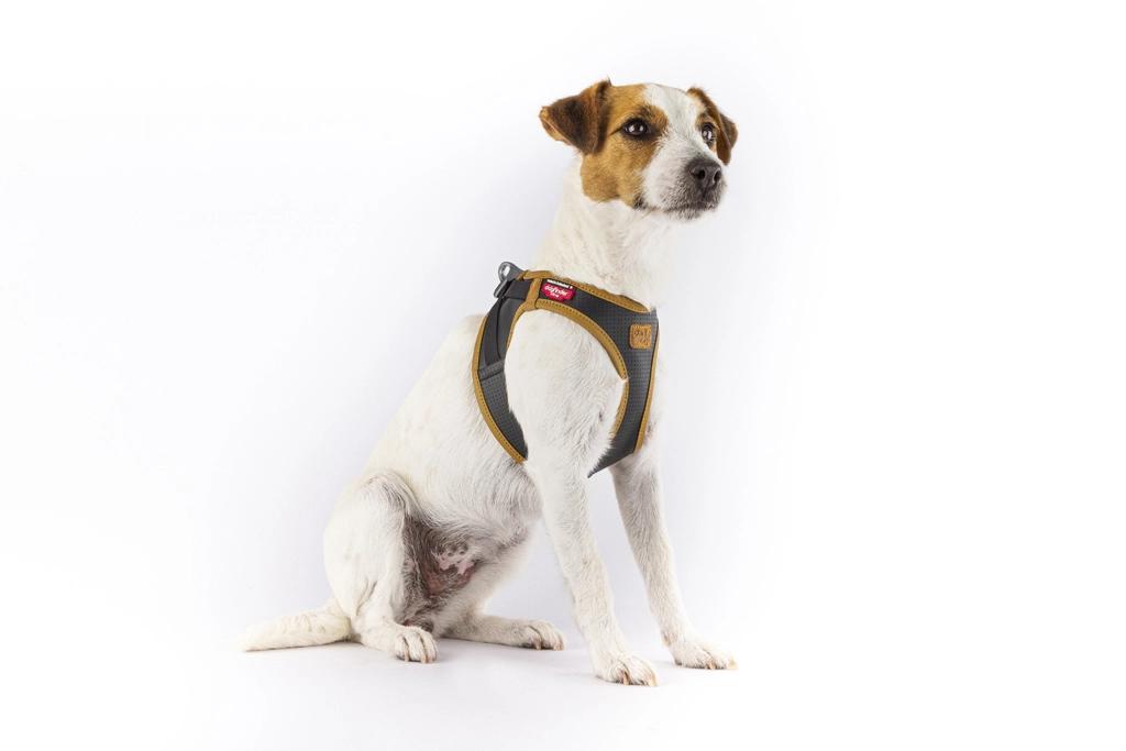 Snel aan- en uittrekken van het tuigje. Lichte, sterke gesp en klittenbandverstelling voor een perfecte pasvorm op het hondenlichaam.