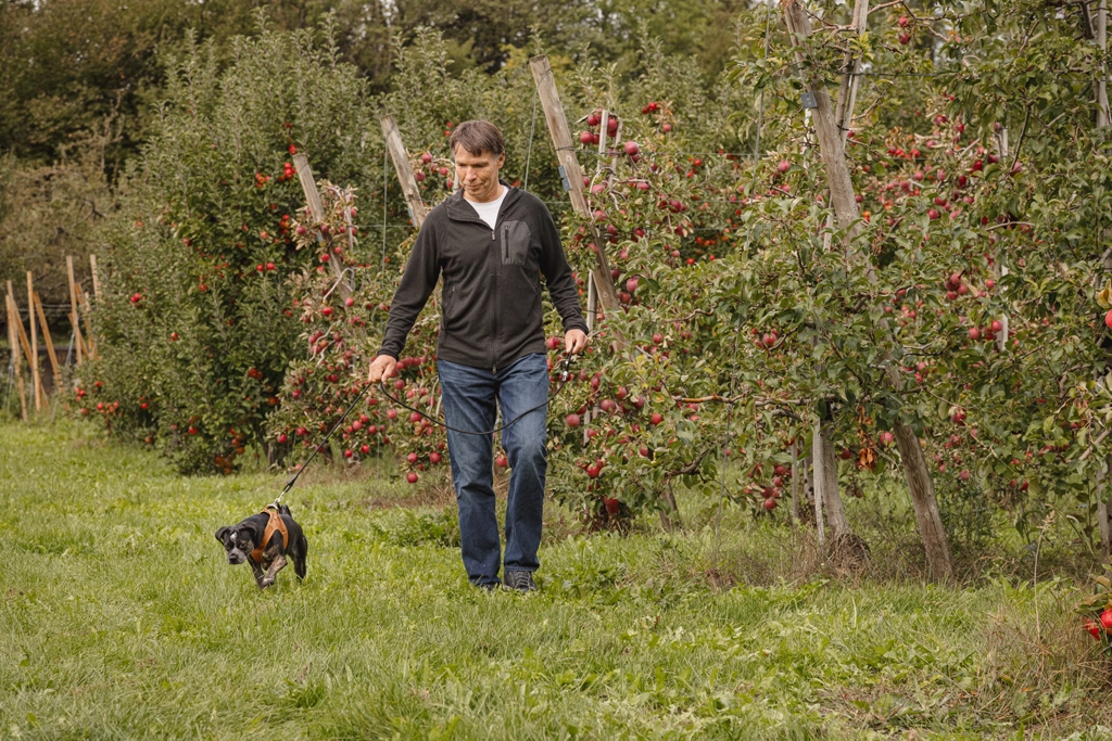 Ontdek het innovatieve tuigje van appelleer, gemaakt van nevenproducten uit de productie van appelsap. Dit premium, plantaardige materiaal is zachter dan regulier leer, voelt prettig aan, is slijtvast en eenvoudig af te nemen. De geperforeerde constructie zorgt voor uitstekende adembaarheid en comfort tijdens dagelijkse wandelingen.