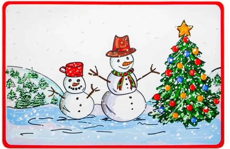 Stijlvolle kerstplacemat van plastic met een sneeuwmanmotief van het merk Toro, die het tafeloppervlak elegant beschermt tegen vuil en krassen. Dankzij het flexibele materiaal is hij eenvoudig te onderhouden – veeg gewoon af met een vochtige doek en kruimels veeg je gemakkelijk in de prullenbak. Ideaal als praktische bescherming, moderne tafelaccessoire en decoratief element tijdens de feestdagen.