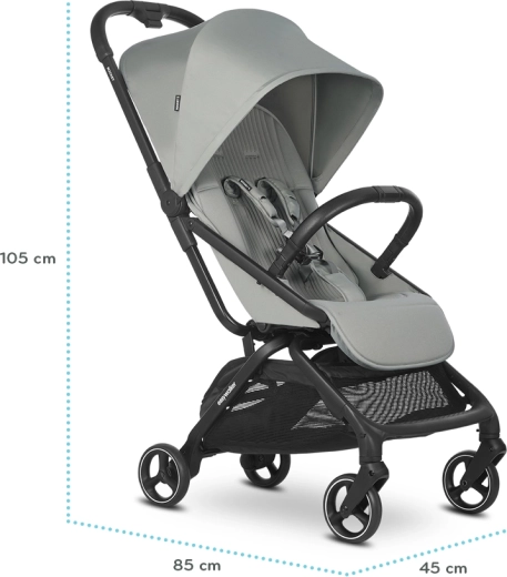 Rockey S is het lichtste model uit de EASYWALKER ROCKEY-familie – hij weegt slechts 7 kg en vouwt en ontvouwt volledig automatisch tot een supercompact pakket dat voldoet aan het handbagageformaat. Toch biedt hij verrassend veel zitruimte met verstelling tot volledig vlak, ideaal voor langere dutjes en comfortabel reizen.