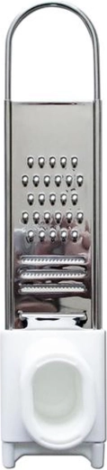 Compacte mini-rasp met een comfortabele witte houder, ideaal voor het snel raspen van kleine porties. De combinatie van roestvrij staal en duurzaam kunststof zorgt voor een lange levensduur, eenvoudig onderhoud en een veilige grip tijdens het werken in de keuken.