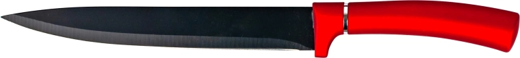 Praktisch snijmes voor het nauwkeurig snijden van vlees, brood en groenten, met een ergonomisch handvat in rood en zilver. Biedt schone en gelijkmatige sneden, comfortabele grip en een modern design dat in elke keuken past.