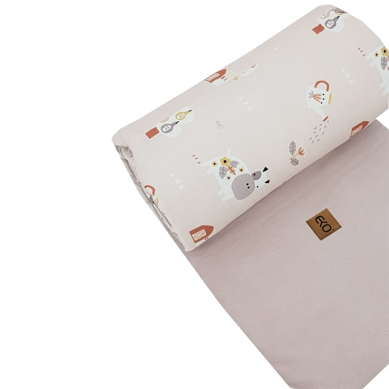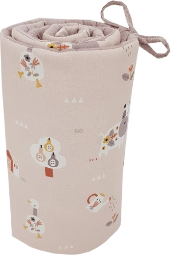 De elegante en functionele EKO VELVET My Farm bedbumper valt op door zijn zachte touch, kwalitatieve vulling en tijdloze uitstraling. De combinatie van 100% katoen met een VELVET-fluwelen oppervlak biedt je baby comfort en een gevoel van veiligheid, terwijl de hypoallergene, ademende vulling schokken tegen de zijkanten van het ledikant dempt.