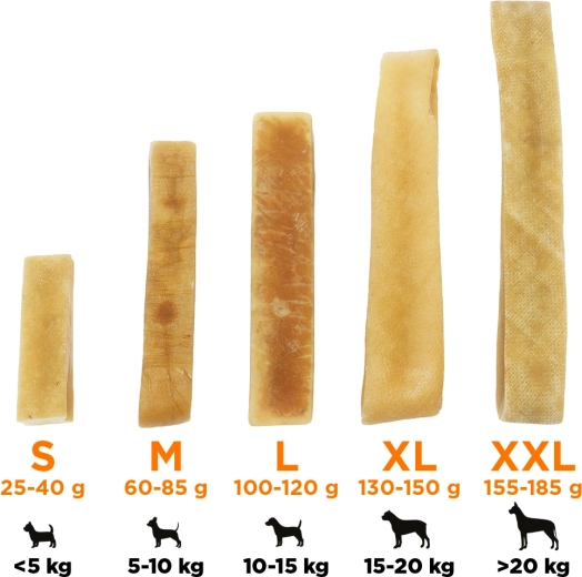 Deze snacks zijn zonder conserveermiddelen, lactose en gluten, gemakkelijk verteerbaar en van nature rijk aan mineralen en vitaminen (calcium, fosfor, vitaminen A, D, E en meer), die vitaliteit en sterke botten ondersteunen. Dankzij de hardheid reinigen ze mechanisch de tanden tijdens het kauwen, waardoor de hoeveelheid plak en tandsteen afneemt.