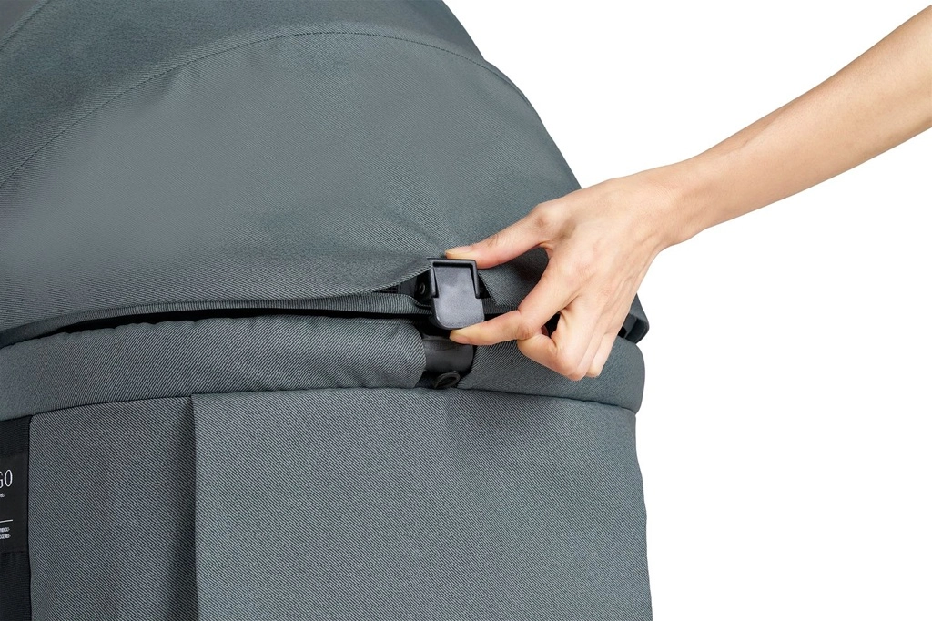 Het geïntegreerde frame-slot houdt de wagen veilig gesloten tijdens dragen en opbergen.