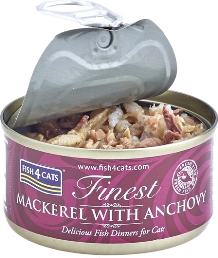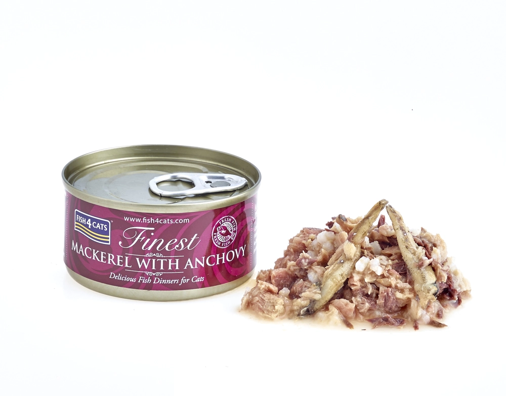Verwen je kat met smakelijk en natuurlijk voer van verse vis. Het blikje FISH4CATS Finest makreel met ansjovis is rijk aan omega-3-vetzuren, bevat licht verteerbare eiwitten en biedt dankzij het hoge visgehalte een gebalanceerde en gezonde voeding voor dagelijks voeren.