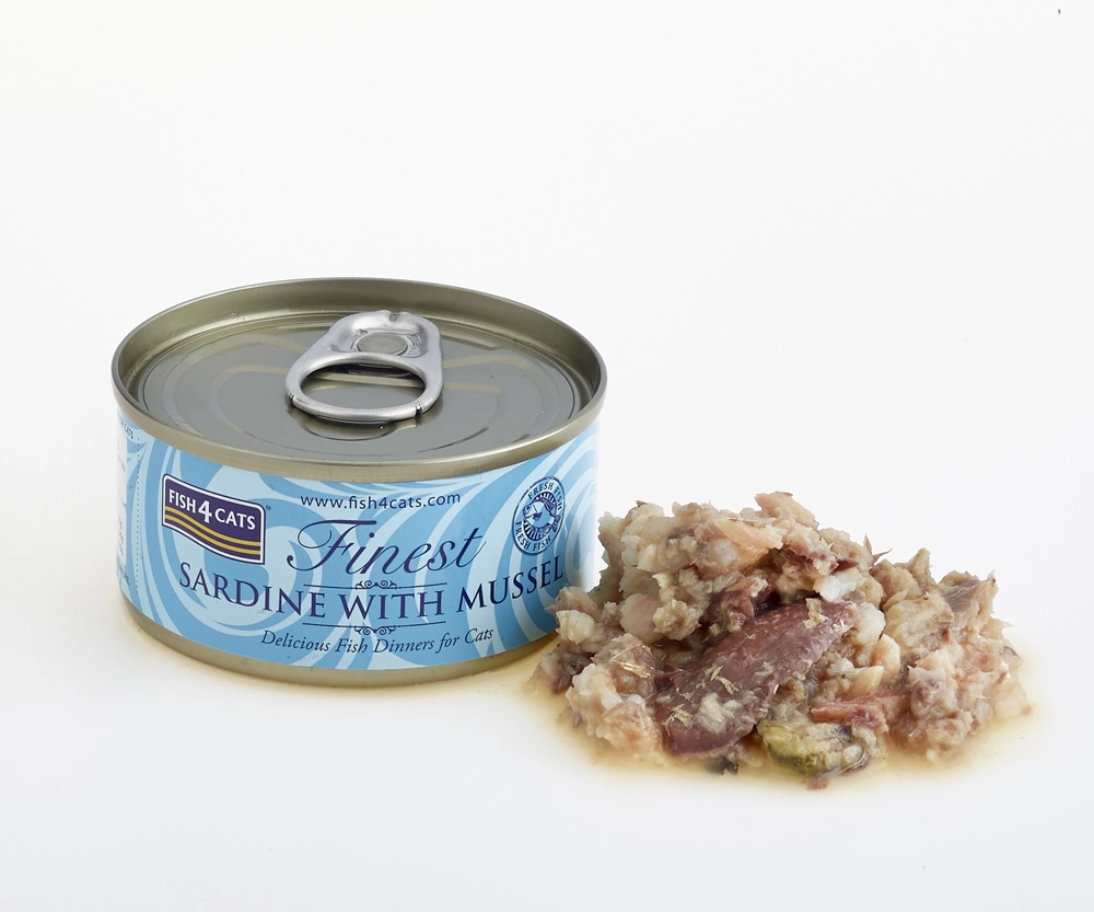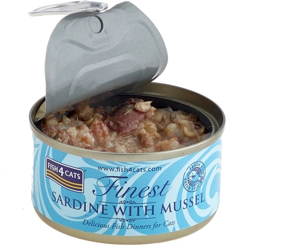 De Fish4Cats-conserve met sardine en mosselen biedt katten van nature smakelijk en nutritioneel uitgebalanceerd voer. Dankzij het zeer hoge visgehalte levert het kwalitatieve eiwitten, waardevolle omega-3 vetzuren en uitstekende verteerbaarheid. De eenvoudige samenstelling zonder onnodige additieven ondersteunt vitaliteit, een glanzende vacht en de algehele conditie.