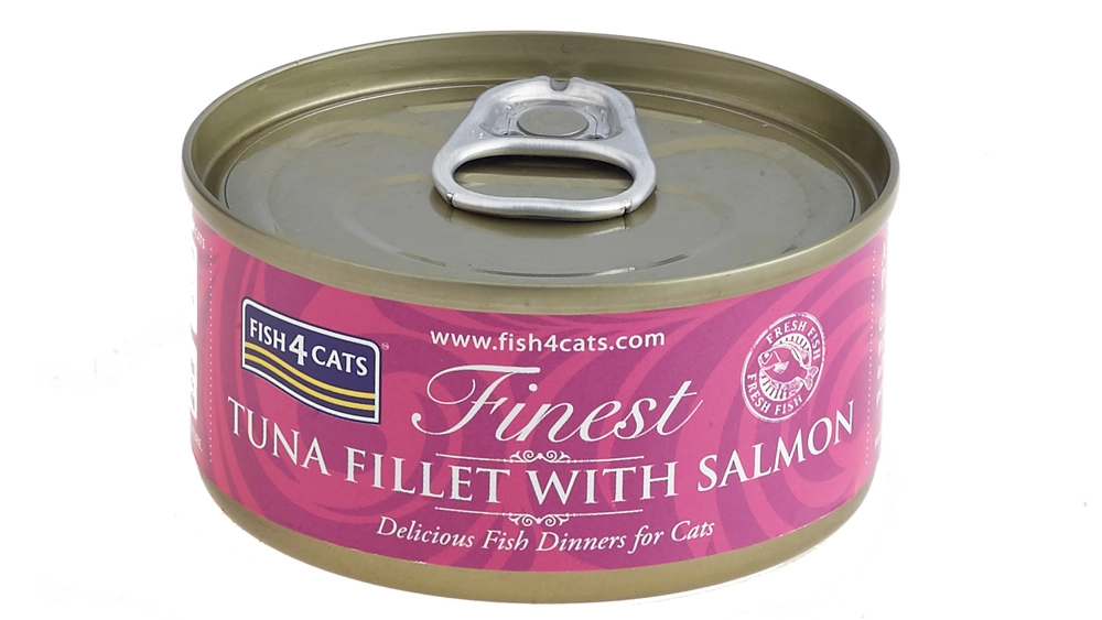 Fish4Cats tonijn met zalm is natvoer met focus op kwaliteit en een eenvoudige samenstelling. Dankzij het hoge aandeel vis levert het van nature essentiële voedingsstoffen en helpt het een glanzende vacht, een gezonde huid en een goede conditie te ondersteunen. Het milde recept zonder onnodige toevoegingen is ook geschikt voor gevoelige katten.